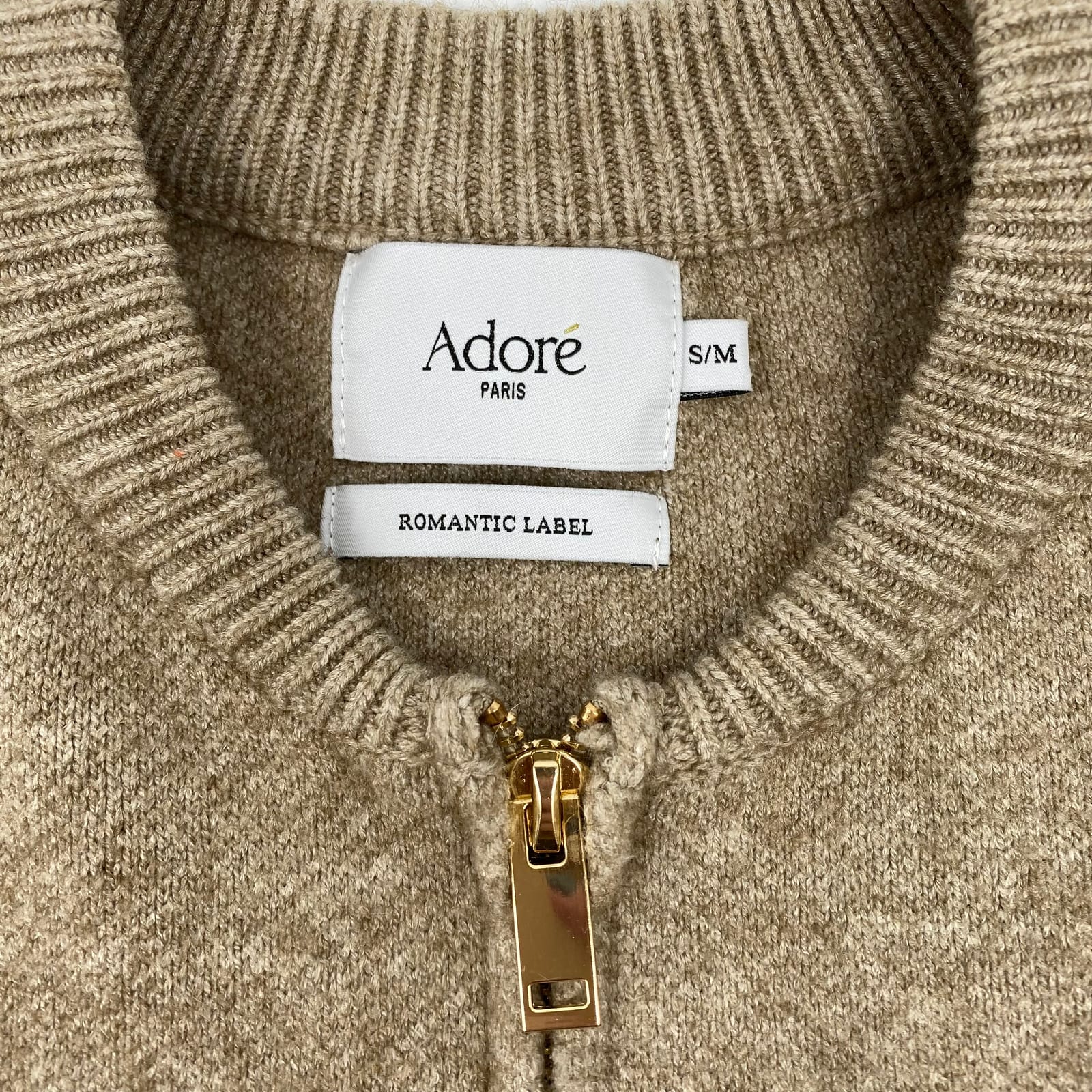 Adore Beige Zip-Up Knit Marcelle Sweater | S