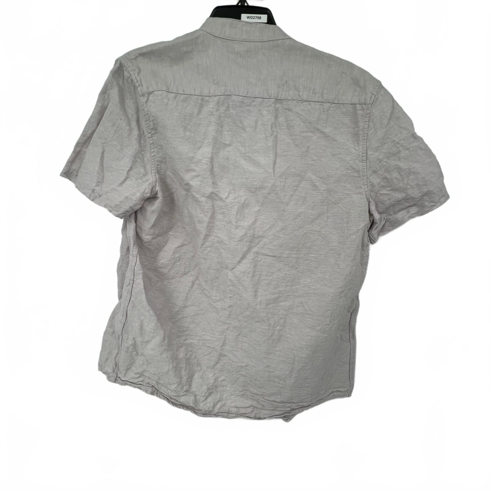 This ASOS gray linen shirt blends breathable cotton and linen for warm-weather days. Lightweight and easy to dress up or down, it stays comfortable through spring and summer. The short sleeves and casual button-down design make it perfect for laid-back looks or smart-casual evenings. Wrinkles are normal for linen and can be pressed out for a crisp finish, giving you a polished, versatile staple. Features: - Made with a cotton-linen blend for breathability - Short sleeve casual button-down design - Lightweight fabric suitable for spring and summer - Easy to layer with tees, polos, or jackets - Wrinkling can be minimized with light steaming - Approx. Measurements: Pit To Pit: 20, Length: 30 - Flaws: Wrinkled that can be fixed with a steam - Inventory: 1101737 A natural pick you’ll reach for again and again.