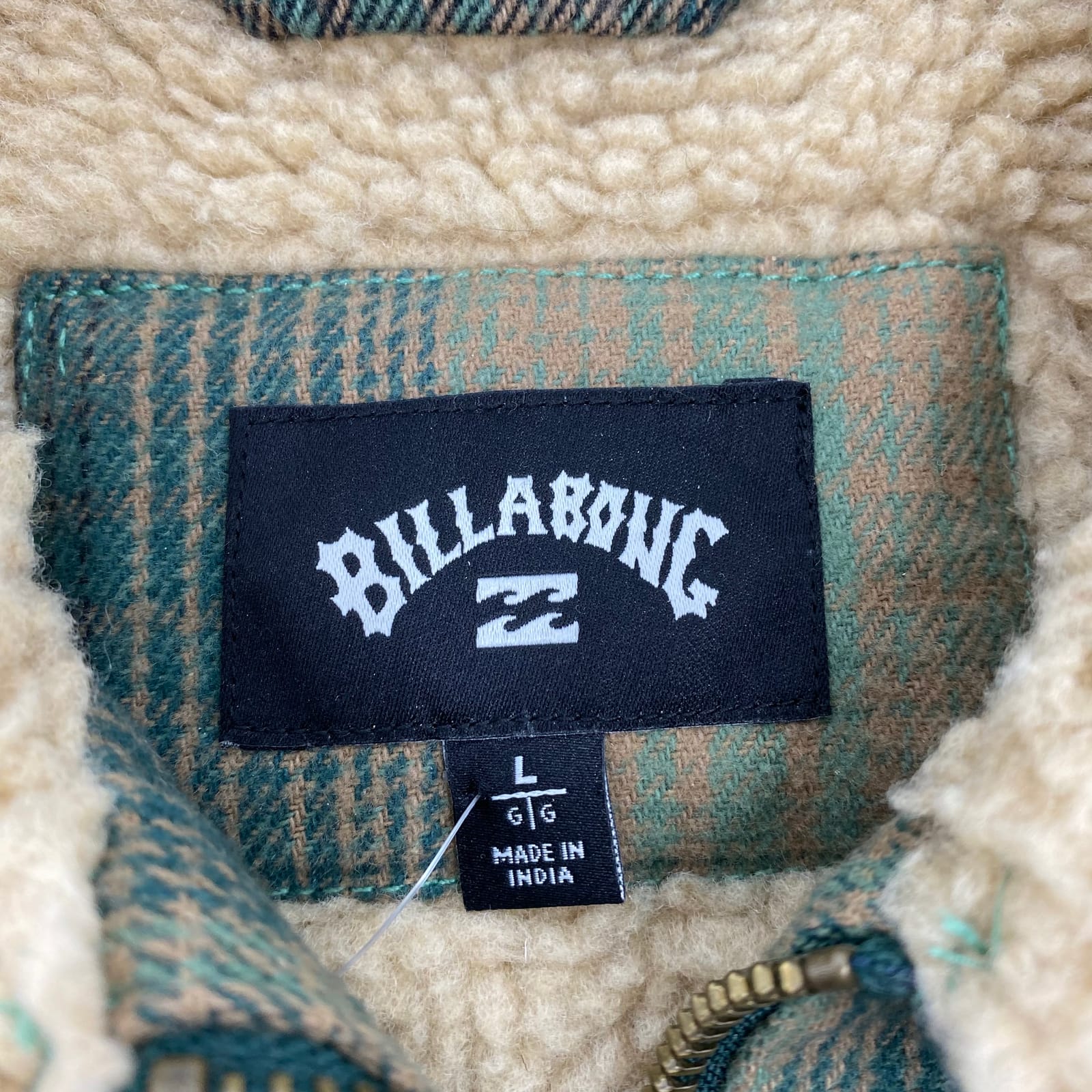 Billabong Green Beige Plaid Sherpa Lined Jacket | L