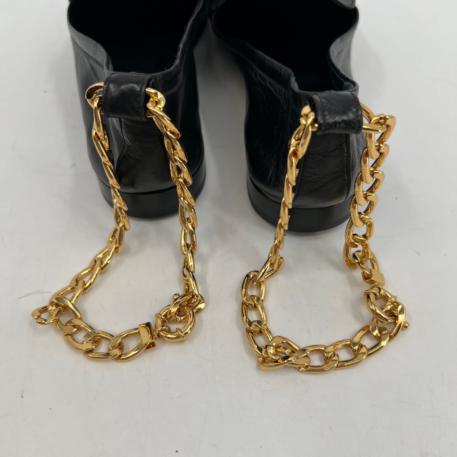 BY FAR Black Gold Ankle Chain Loafers