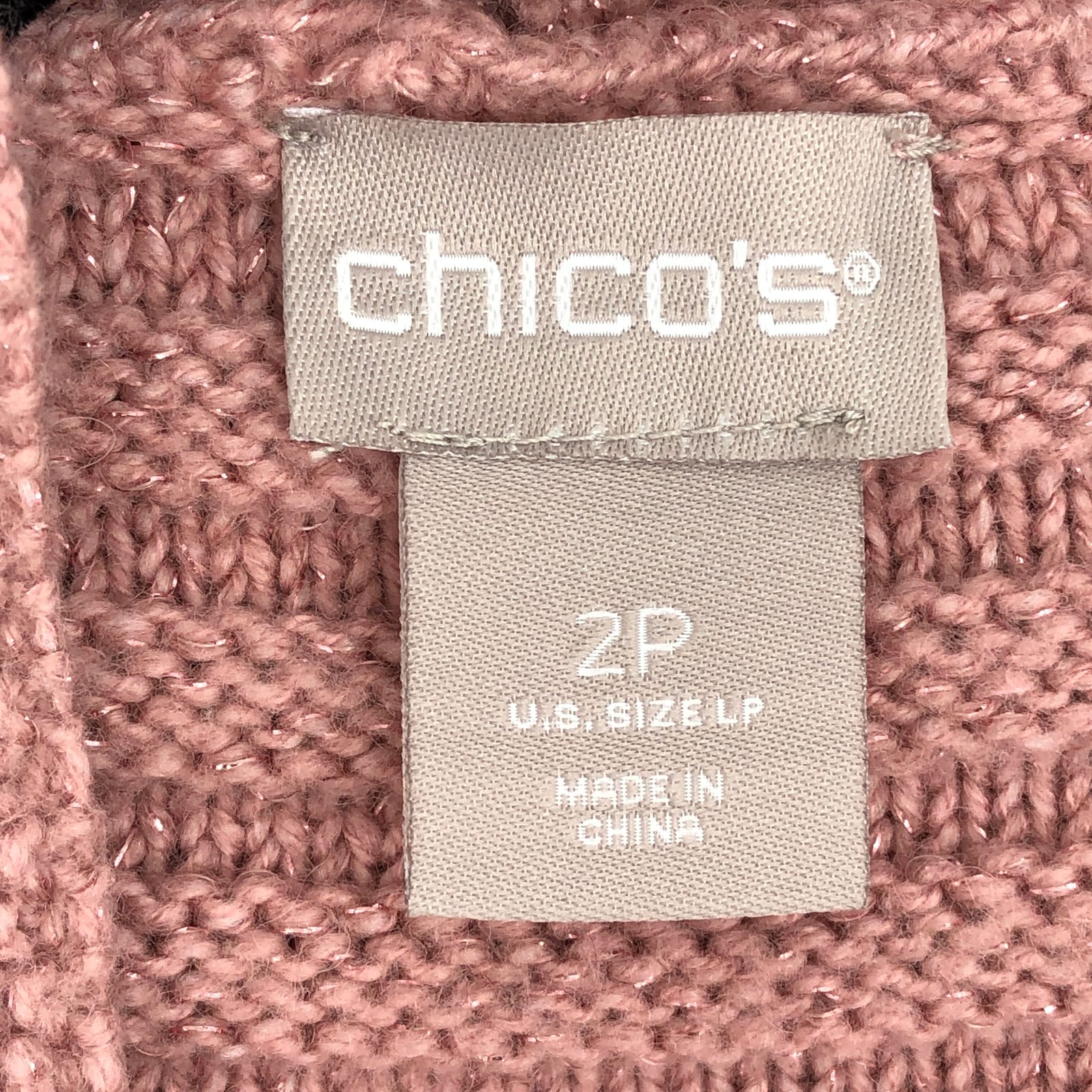 Brighten up your wardrobe with this Chico's Pink Sleeveless Cardigan. The perfect companion for those breezy summer nights or crisp fall mornings, this versatile piece is just what you need to add a pop of color and a touch of warmth to any outfit. Made from a comfortable blend of cotton and polyester, its pullover style makes it easy to throw on and go. Whether you're heading to the office or a casual brunch, this cardigan has got you covered. Plus, its solid color design means it pairs well with just about anything in your closet. Features: - Made in China - Blend of Cotton and Polyester material - Pullover closure for easy wear - Suitable for any season and occasion - Classic style with a solid pattern - Approx. Measurements: Pit To Pit: 23, Length: 29 - Inventory: #08193 Don't miss out on this must-have addition to your wardrobe. This Chico's Pink Sleeveless Cardigan is more than just a sweater—it's a style statement. Get yours before it's gone!