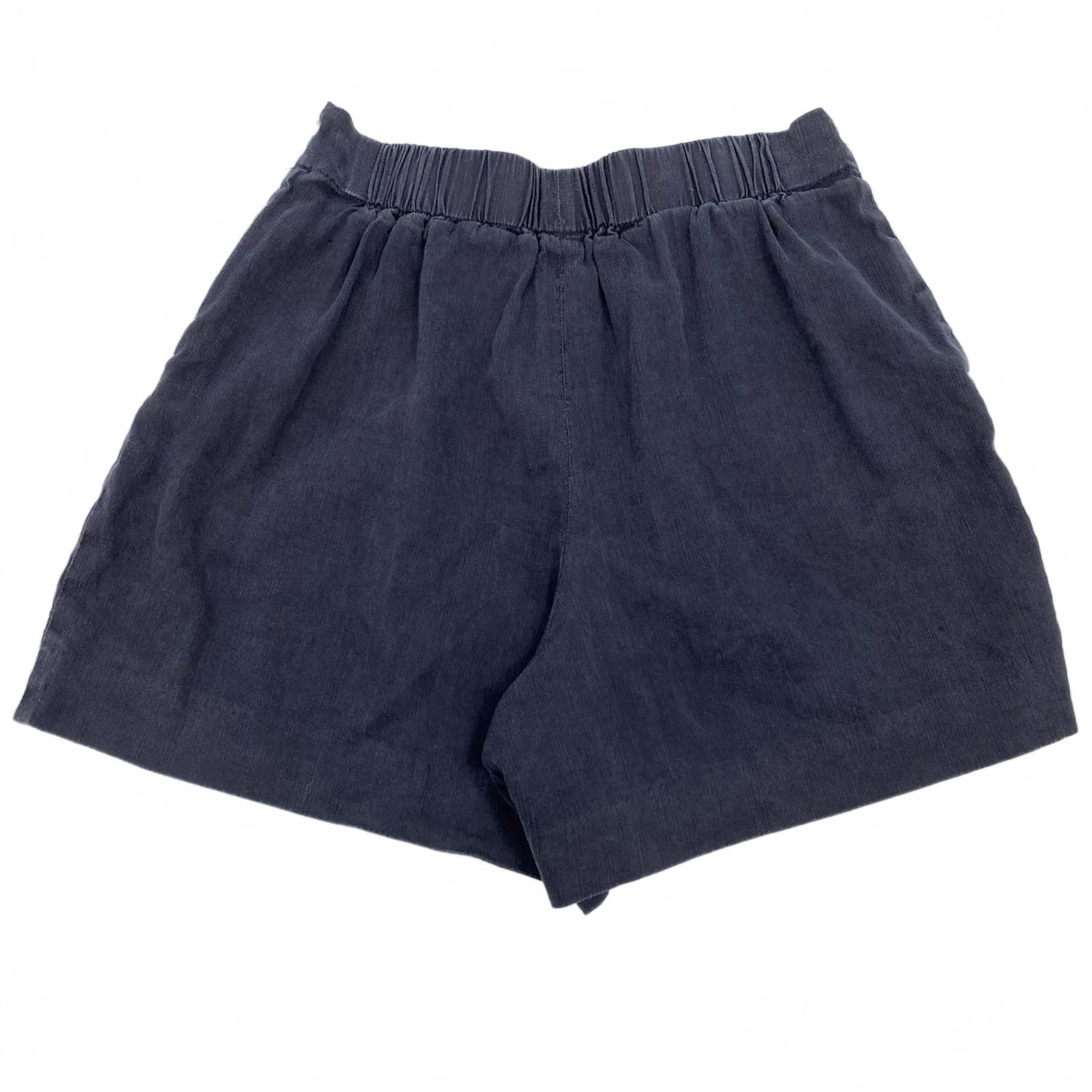 These navy blue high-waisted shorts from Cuyana blend linen and lyocell for breathable, silky-soft wear. The paperbag silhouette creates a relaxed, polished look ideal for warm days. Made in Portugal, this solid pair pairs easily with a tucked blouse, simple tee, or lightweight cardigan, making it a versatile staple for spring through fall. Experience comfortable structure and timeless style with every wear. Features: - Made in Portugal - Linen and Lyocell blend for breathability and drape - Paperbag high-waisted fit with pleating for a tailored look - Solid navy color for easy styling - Regular size S available - Approx. Measurements: Inseam Measurement: 4 in, Waist Measurement: 25 in, Rise Measurement: 11.5 in - Inventory: 1133605 This is your go-to no-fuss short that elevates warm-weather outfits.