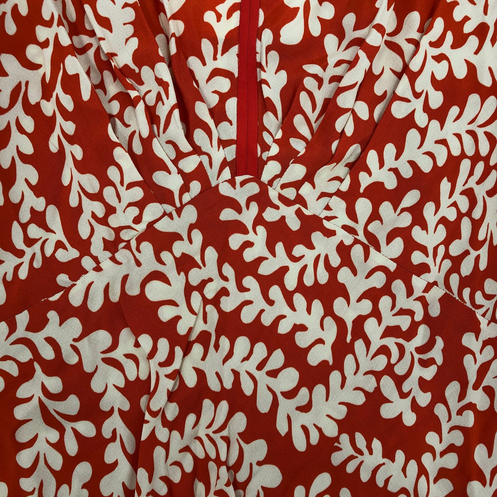Diane Von Furstenberg Orange Cream Madrid Patterned Ruffle Hem Midi Dress