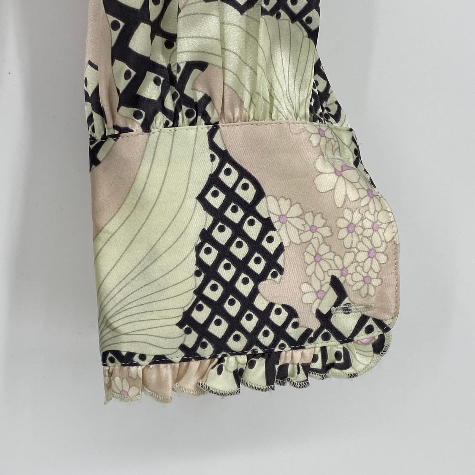 Slip into the elegance of our Purple & Green Floral Silk Dress and make every entrance memorable! Designed for any occasion, from casual outings to special events, this dress combines classic charm with a playful pattern. Imagine the soft silk caressing your skin as you flit from one gathering to another, turning heads with the vibrant colors and stylish V-neck cut. Whether it's a crisp fall day or a warm summer evening, this dress promises to be your go-to for effortless chic. Features: - Material: Luxurious silk for ultimate comfort - Style: Pullover dress with button closure for easy wear - Sleeve Type: Long sleeves perfect for all seasons - Occasion Versatility: Ideal for both casual and special events - Pattern: Eye-catching floral design to stand out in any crowd - Approx. Measurements: Pit To Pit: 18, Length: 31 - Inventory: #08473 Don't miss out on this versatile wardrobe staple. Add a touch of floral finesse to your style today and step out with confidence!