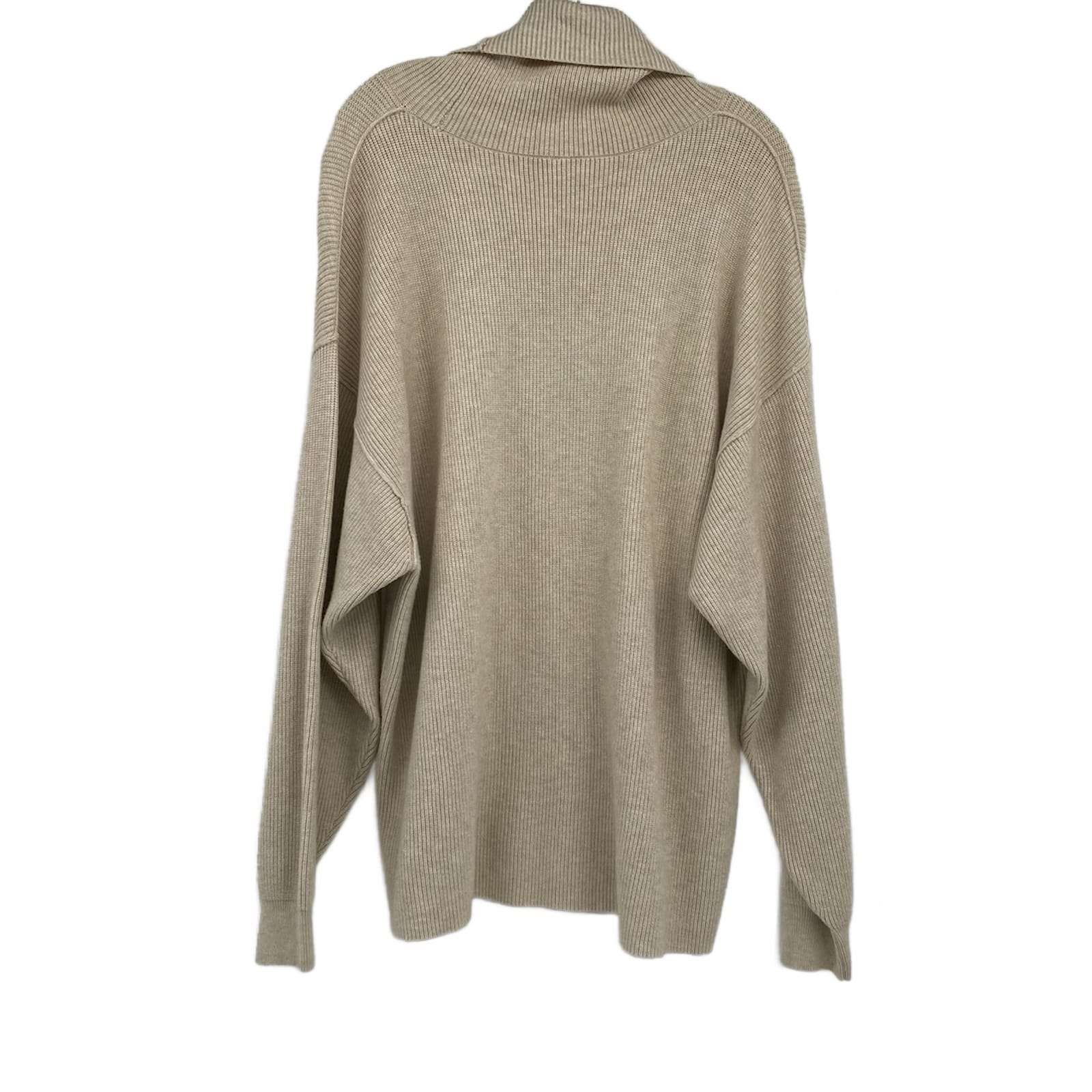 This Free People turtleneck knit sweater brings timeless beige warmth to your wardrobe. Soft, breathable blends of viscose, polyester, and nylon drape into a tunic silhouette that pairs instantly with denim or leggings. Cozy for winter layers, light enough for spring and fall, it’s a versatile staple you’ll reach for across seasons. Features: - Soft knit blend for warmth and drape - Turtleneck design for a classic, polished look - Tunic length with versatile layering potential - Solid beige pairs with any outfit - Relaxed Regular fit for everyday wear - Approx. Measurements: Pit To Pit: 24 in, Length: 28.5 in - Inventory: 1133103 This cozy staple won’t wait around long.