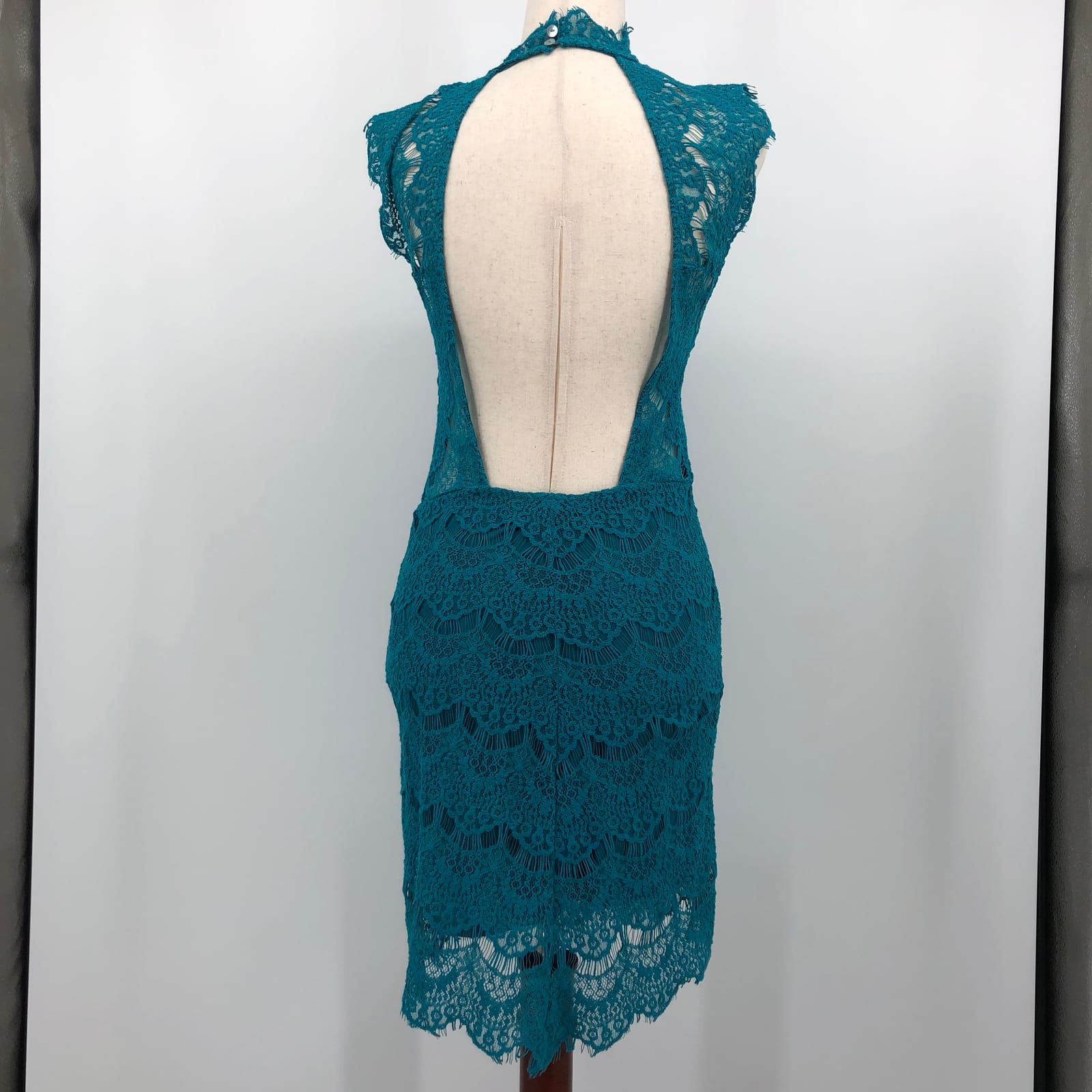 Step out in style and steal the spotlight with this Free People Blue Backless Pencil Dress. It’s not just a dress, it's a statement. With a mock neck and delicate lace accents, you'll be the envy of every room you walk into. Perfect for any occasion, this dress is designed to make you look as good as you feel. And who said fashion can't be comfortable? The soft cotton-nylon blend is easy on the skin, making it your new go-to dress for every season. Features: - Made in China for assured quality - Versatile style suitable for any occasion - Knee-length design for an elegant silhouette - Button closure for a secure fit - Can be worn in Fall, Summer, and Spring seasons - Measurements: Pit Top Pit: 13.5, Length: 34.5 - Inventory: #04190 Why blend in when you can stand out? Make a bold style statement with this Blue Backless Pencil Dress from Free People. Don't wait - this dress is waiting to make you the star of the show. Order now!