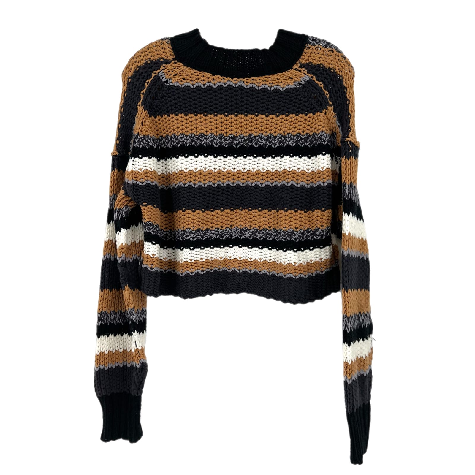 Free People Tan Striped Cotton Pullover Sweater | S