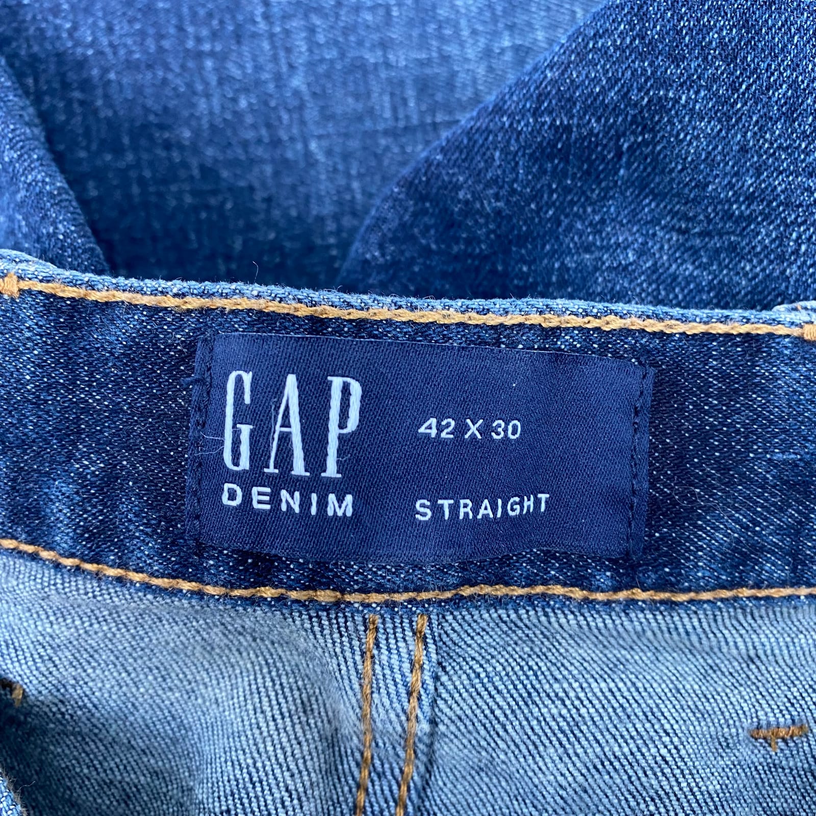 This GAP straight-fit jean is built for everyday comfort and classic style. Crafted from a cotton blend for durability and a soft feel, it sits comfortably at the waist with a versatile straight leg that pairs with tees, sweaters, or jackets. Perfect for Fall, Spring, or any season, this blue jean moves with you from weekend errands to casual Fridays. Features: - Cotton blend for durable comfort - Straight fit with versatile silhouette - Regular size 42 for comfort and ease - Made in Bangladesh with quality construction - Ideal for multiple seasons and everyday wear - Approx. Measurements: Inseam Measurement: 30, Waist Measurement: 42, Rise Measurement: 12, Inseam: 30 - Inventory: 1137309 Add this timeless blue staple to your wardrobe before it disappears.