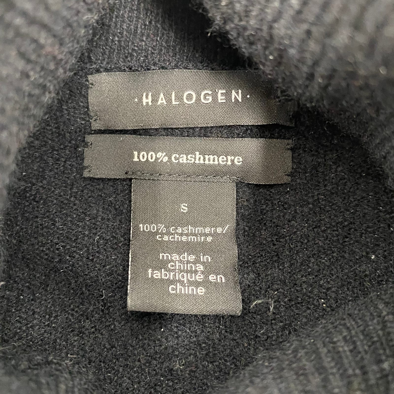 This Halogen cashmere turtleneck sweater is pure everyday luxury. Soft, warm cashmere drapes comfortably for chilly days and cozy evenings, with a timeless black solid look that pairs with jeans, skirts, or tailoring. A classic pullover that adds polish to your winter, spring, or fall vibe, while keeping you snug without bulk. Features: - Made from cashmere for premium softness - Solid black pullover with classic turtleneck - Regular fit in size S for versatile layering - Warm, lightweight warmth ideal for multiple seasons - Pilling visible as pictured with brief care guidance - Approx. Measurements: Pit To Pit: 18.5 in, Length: 23 in - Flaws: Pilling throughout, as pictured. - Inventory: 1140354 A timeless staple that elevates your wardrobe before it’s gone.