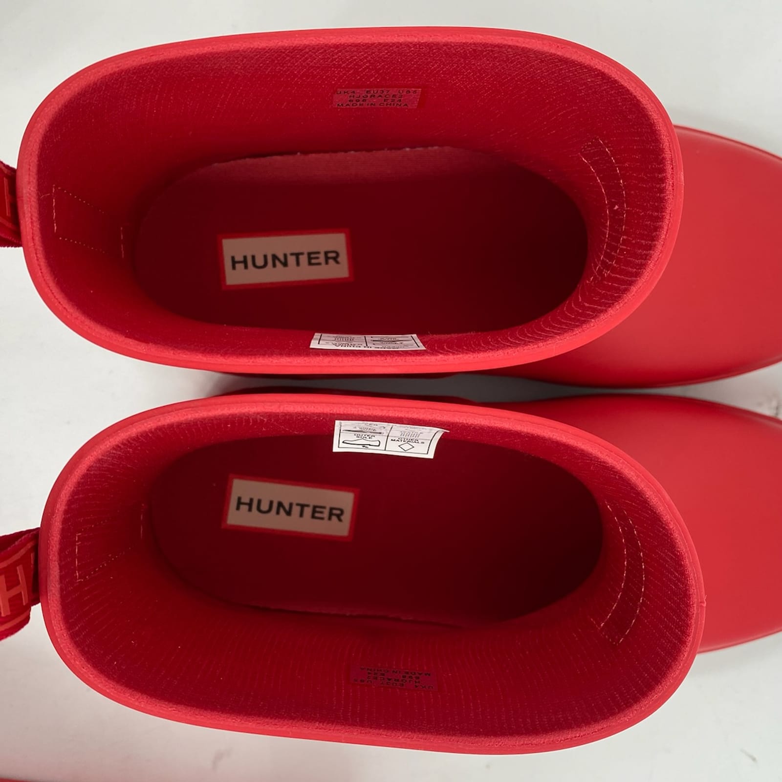 These Hunter Grace rain boots keep your little explorer’s feet dry and comfy from fall walks to wintery adventures. Made in China from sturdy textile, they’re built to handle wet terrains while still feeling light and easy to wear. A bold red finish adds a pop of color to any outdoor outfit, and the pull-on design makes quick outfit changes a breeze. Perfect for rainy days, muddy parks, and everyday outdoor fun. Features: - Textile construction for durability - Pull-on style for easy on/off - Bold red color adds visibility - Waterproof design for wet conditions - Regular size 5 for Big kids - Inventory: 1135973 A limited pair that’s ready to brave the forecast with your kid.
