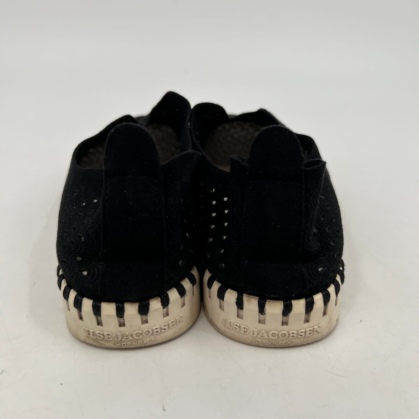 Step into style with these chic Ilse Jacobsen Black Laser Cut Flats. Perfect for any occasion, these leather flats are your go-to for a classic yet trendy look. Whether you're calling them black loafers or stylish leather flats, they're designed to keep you comfortable and fashionable from spring to fall. Picture yourself pairing them with your favorite outfits and turning heads wherever you go! Features: - Elegant laser-cut design - High-quality leather material - Comfortable round toe shape - Versatile for any occasion - Ideal for Spring, Summer, and Fall - Flaws: Some light wear, as pictured. - Inventory: 1065509 Don't miss out on adding these timeless Ilse Jacobsen flats to your wardrobe. Grab them now and elevate your shoe game!