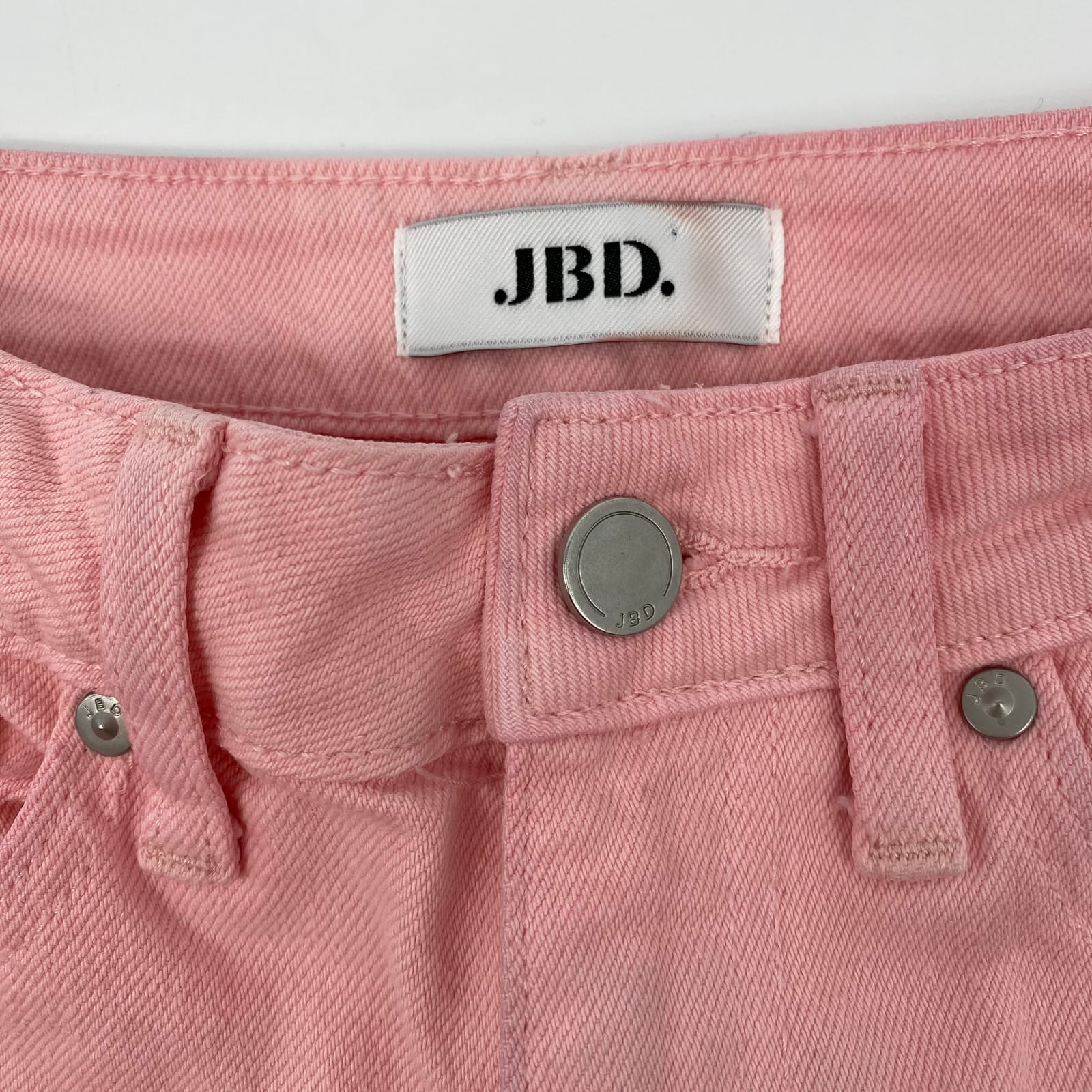 These JBD pink straight-leg jeans bring casual polish to your everyday looks. Crafted from a comfortable cotton-spandex blend, they move with you from errands to coffee dates. Slight gray staining at the end of the left pant leg and zipper flap is noted, but the classic solid pink pairs easily with tees, knits, or lightweight jackets for winter, spring, summer, or fall wear. Features: - Cotton-spandex blend for easy stretch - Straight-leg cut for versatile fits - Solid pink color that pairs with any top - Made in Vietnam with durable construction - Good condition with minor cosmetic staining as pictured - Approx. Measurements: Inseam Measurement: 27 in, Waist Measurement: 26 in, Rise Measurement: 10 in - Flaws: Gray staining on end of left pant leg and faintly on zipper flap, as pictured. - Inventory: 1131510 A go-to pair that blends comfort and style, grab them before they’re gone.