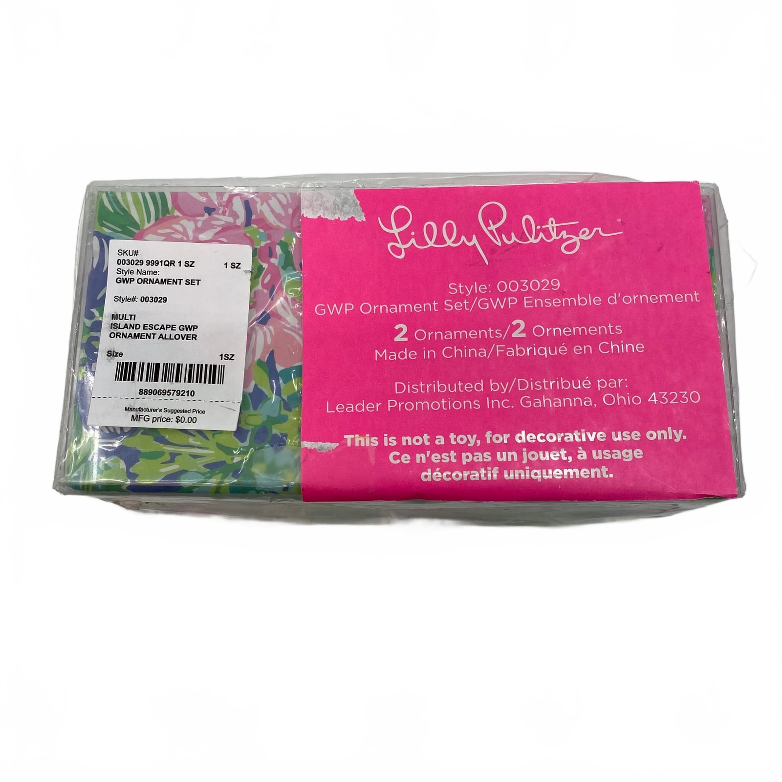 This Lilly Pulitzer ornament brings a splash of color to your holiday decor. Made from lightweight synthetic material, its cheerful pink and green hues add a playful, seasonal vibe to your home. Perfect for year-round display, it fits any Christmas tree or winter tablescape, and its compact size makes it easy to place wherever you want a pop of color. Features: - Synthetic material for easy care and durability - Compact ornament suitable for regular display - Vibrant pink and green palette - Winter, Spring, Summer, Fall decor versatility - Ready for in-store or gift-friendly presentation - Inventory: 1133824 A bright touch that stands out in any display—don’t miss out.