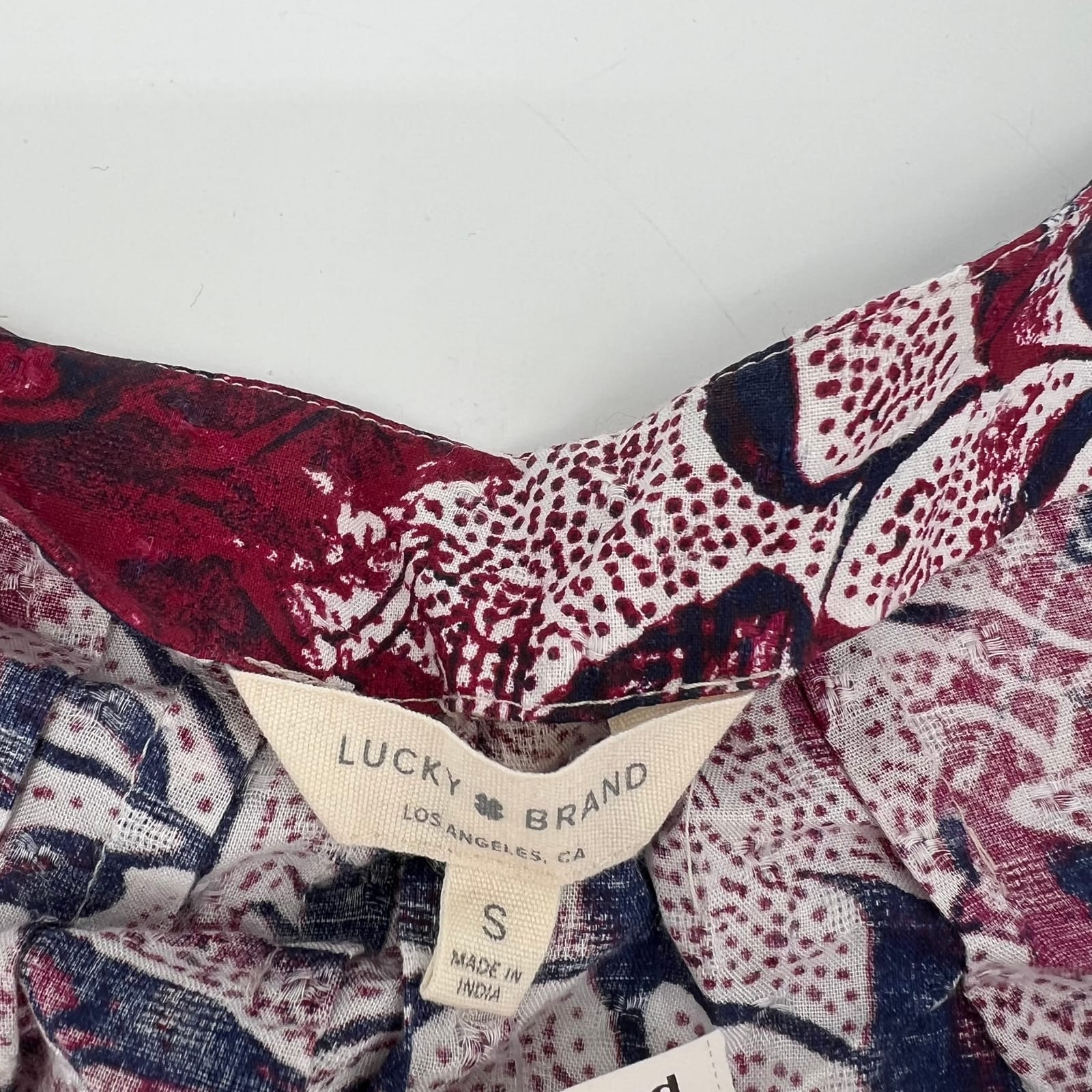This Lucky Brand floral blouse brings fresh, effortless charm to your wardrobe. Soft modal drapes comfortably, with a delicate white, red, and black floral print that pairs beautifully with jeans, skirts, or tailored pants. Lightweight enough for spring and summer, yet polished enough for work or weekend outings, it’s easy to dress up or down while keeping a breezy, flattering fit. Features: - Made from soft modal for drape and comfort - Floral print in white, red, and black for versatile styling - Regular fit, easy to layer under cardigans or jackets - Machine washable practical care for busy weekends - Made in India with attention to quality and finish - Approx. Measurements: Pit To Pit: 19, Length: 25 - Inventory: 1054563 A limited find that won’t hang around long.