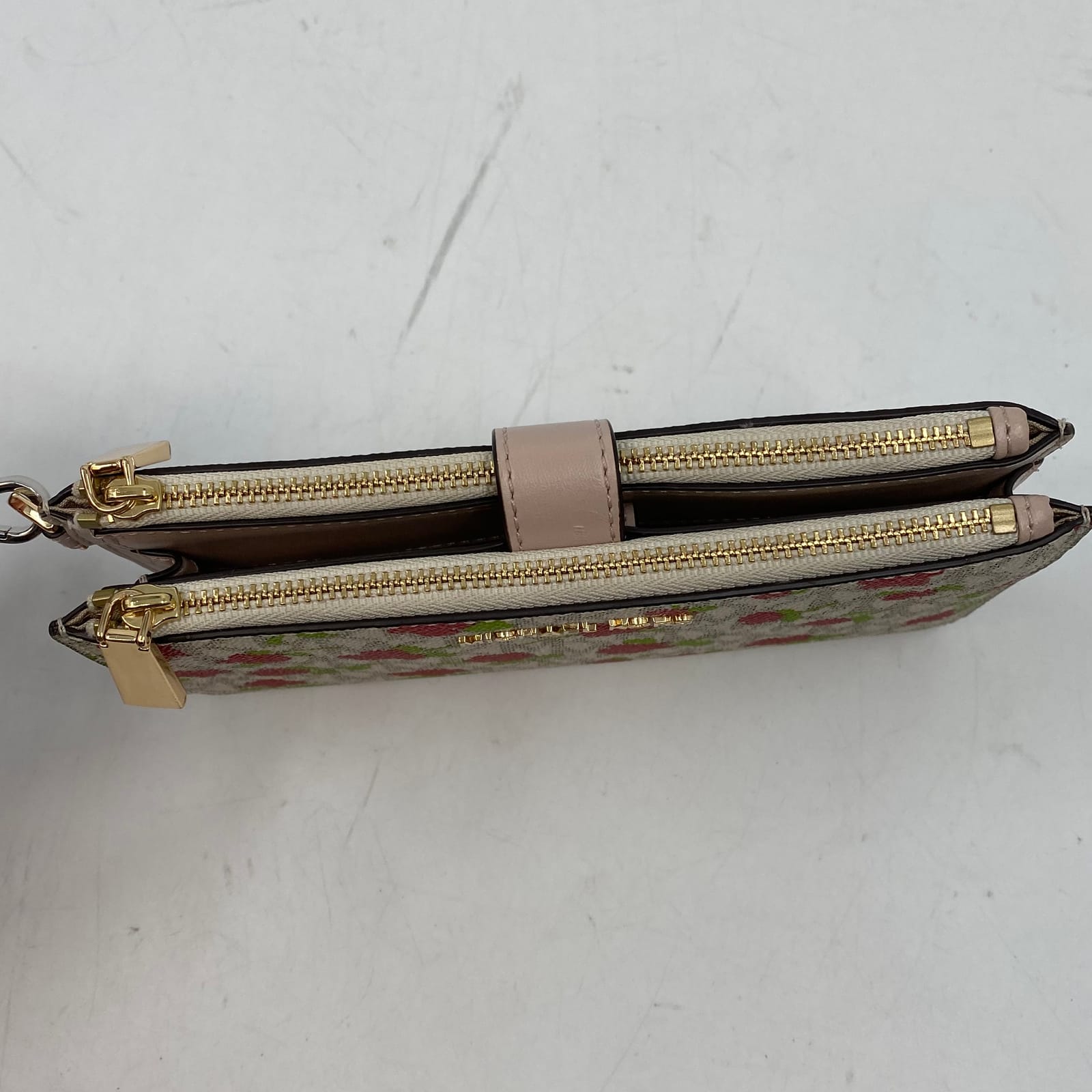 This Michael Kors clutch in soft beige leather brings timeless elegance to any outfit. Lightweight and versatile, it graces day or night with a floral motif that stays chic across seasons. Its compact size keeps essentials secure without bulk, making it perfect for evenings out or formal events. Built for easy access and long-term wear, it pairs beautifully with everything from neutral dresses to bold prints. Features: - Beige leather exterior for a refined look - Floral pattern adds classic charm - Compact clutch with secure interior space - Designed for versatile day-to-night use - Made in Vietnam for quality craftsmanship - Approx. Measurements: Bag Height: 5 in, Bag Width: 7 in - Inventory: 1143342 A classic piece that complements your wardrobe in any season.
