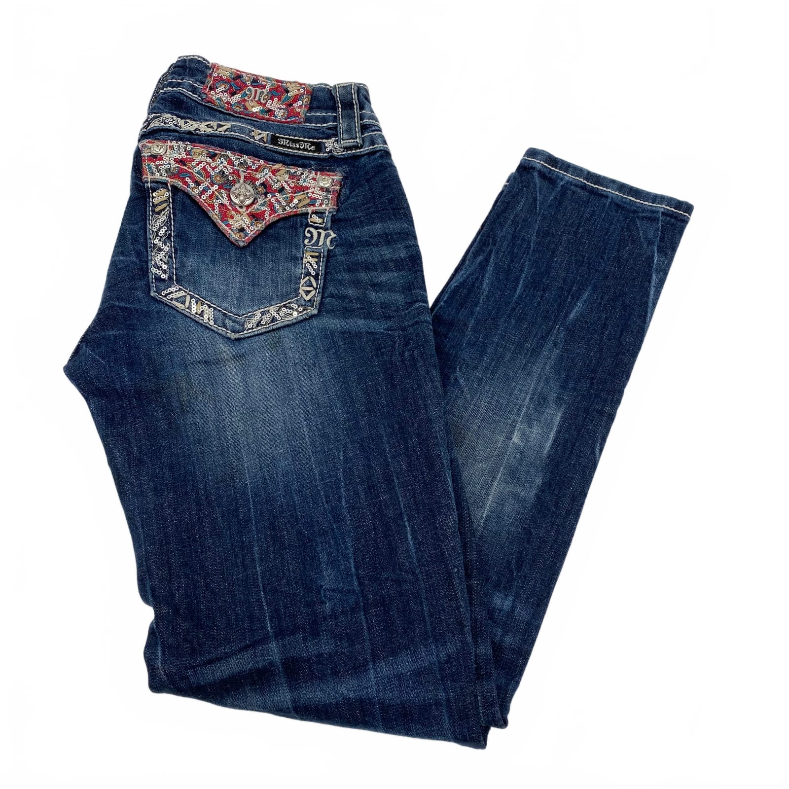 This Miss Me skinny jeans bring classic flair with a touch of sparkle. The blue cotton-blend fabric feels soft and flexible, while rhinestone accents add a subtle, dressy twist. Designed for everyday comfort, these jeans hug your curves with a flattering fit and work well with tees, sweaters, or a chic top. Durable enough for all-season wear, they pair easily with sneakers or heels for versatile outfits. Features: - Cotton blend for comfortable stretch - Rhinestone accents for a touch of sparkle - Skinny fit that flatters curves - Classic blue wash suitable for any season - Regular sizing with wear signs consistent with in-store condition - Approx. Measurements: Inseam Measurement: 30, Waist Measurement: 27 - Flaws: Some signs of wear - Inventory: 1143434 A limited find that won’t hang around long.