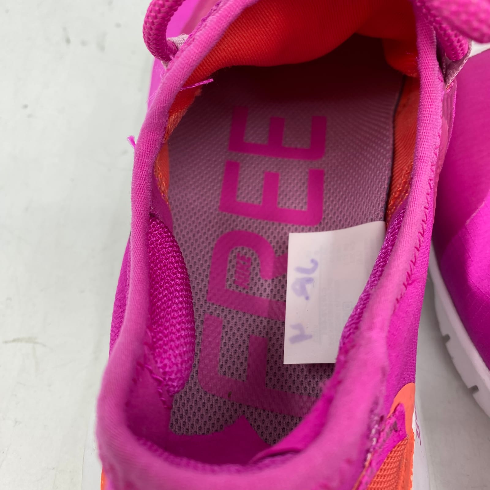 This Nike Free Run 5.0 sneaker delivers lightweight comfort with a flexible textile upper for everyday wear. Pink solid design pairs with joggers, leggings, or denim, making it your go-to choice for training, errands, or casual outings. Breathable and versatile across seasons, it fits your active lifestyle with reliable support. Features: - Textile upper for breathable comfort - Lightweight, flexible ride - Solid pink design pairs with multiple outfits - Made in Vietnam with regular US size 8 - Versatile for training, commuting, or weekend wear - Flaws: Loop on back of left shoe has been cut, as pictured. - Inventory: 1133716 A reliable classic that keeps up with your day, don’t let it slip away.