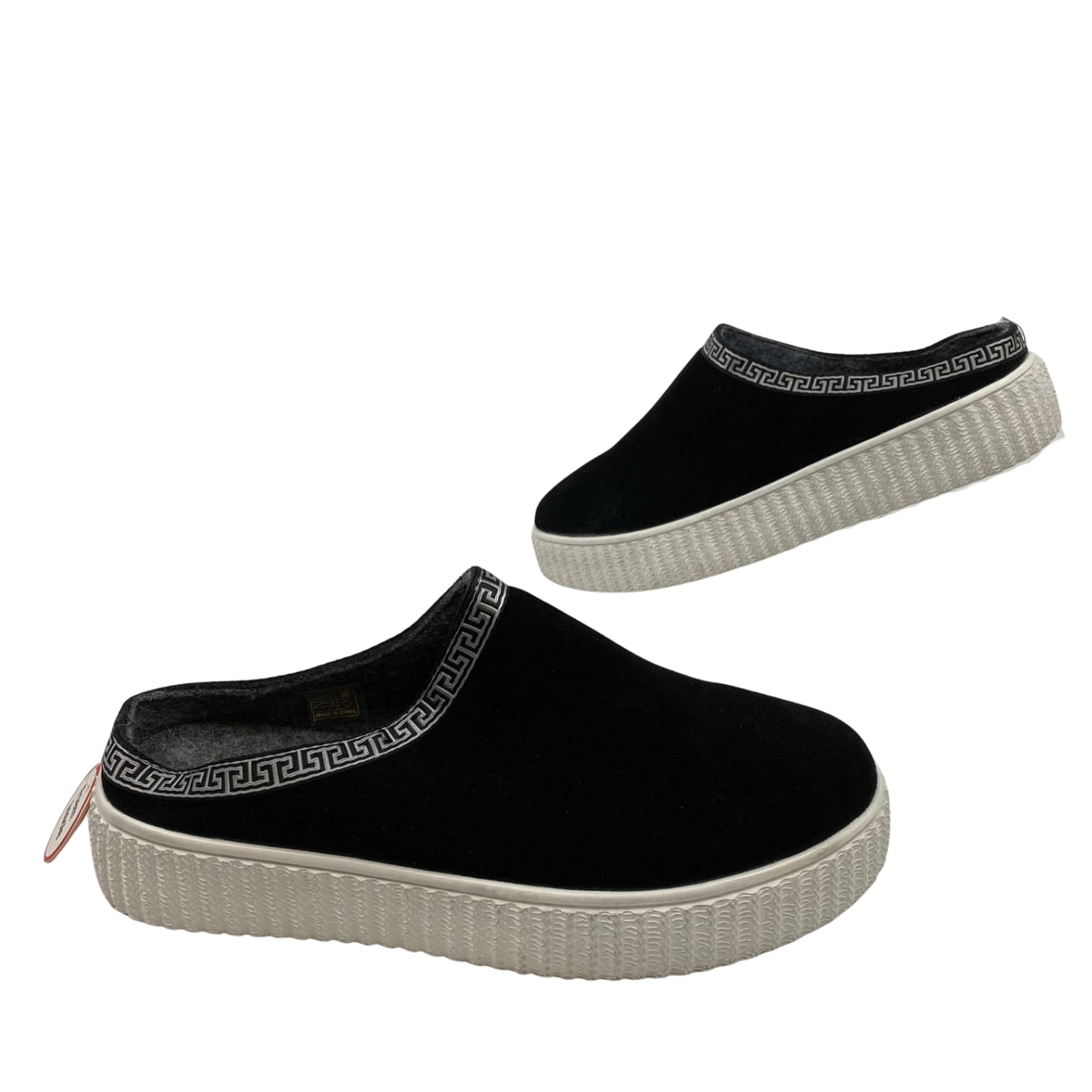 Slip into comfort with these Religious Comfort black suede mules. Designed for any occasion, their waterproof feature makes them perfect for unpredictable weather while the classic style complements your everyday wardrobe. Whether you're lounging at home or stepping out for errands, these versatile slippers provide the ideal blend of style and functionality. Features: - Constructed from durable suede for long-lasting wear - Waterproof design to keep your feet dry in any weather - Classic mule style for easy on and off - Soft synthetic lining for added comfort - Suitable for year-round wear - Inventory: 1130305 This is the cozy upgrade your footwear collection needs.