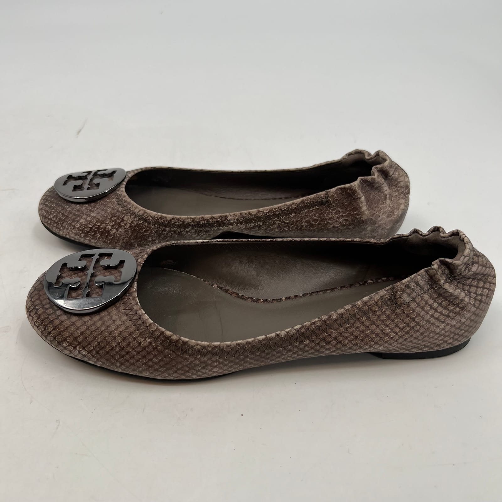 Step into the chic world of Tory Burch with these elegant gray flats, perfect for any season and any occasion. Imagine pairing these leather loafers with your favorite outfit, whether you're headed to a casual lunch or a day at the office. With their classic animal print design and round toe, these shoes are not just footwear; they're a style statement. Whether you're calling them flat shoes or loafers, these Brazilian-crafted beauties are ready to add a touch of luxury to your daily ensemble. Features: - Made in Brazil - Leather upper material - Convenient pull-on closure - Round toe shape - Versatile for all seasons - Flaws: Insoles show signs of wear (added photos) - Inventory: 1079549 Don't miss out on the opportunity to own these timeless Tory Burch flats. Elevate your shoe collection with style and comfort today!
