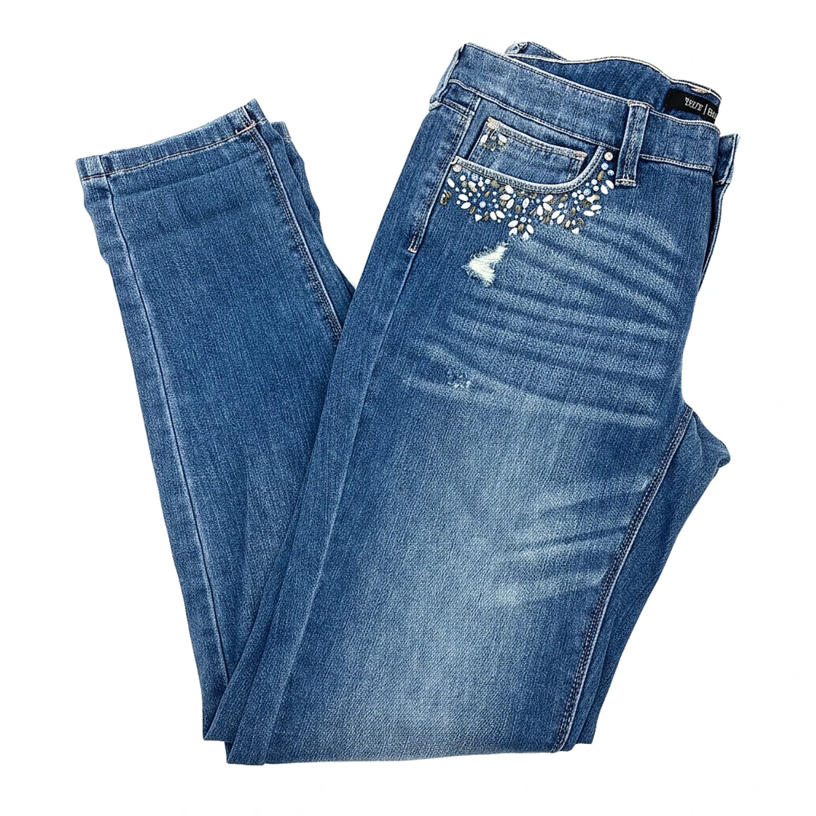 White House Black Market Medium Wash Rhinestone Girlfriend Jeans
