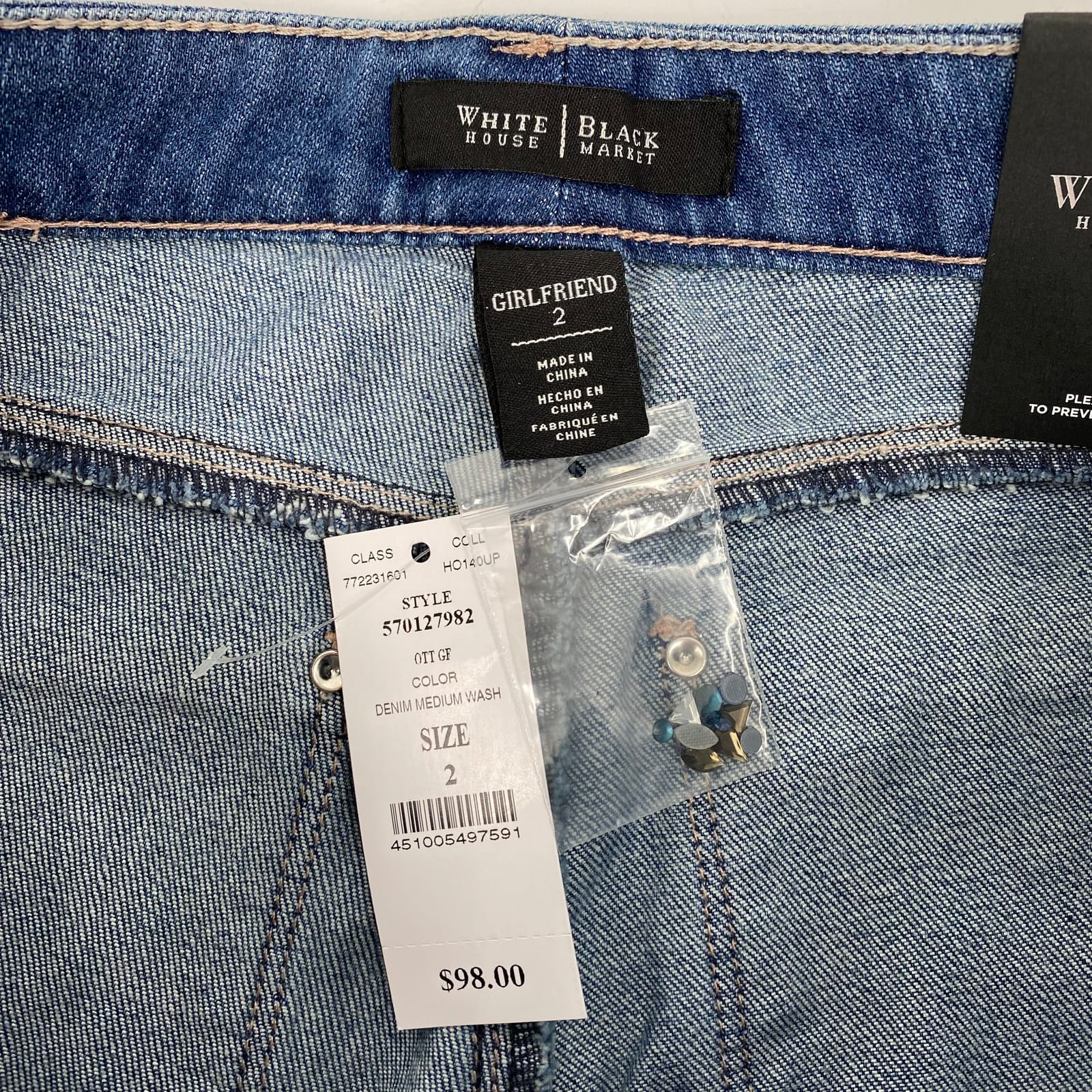 White House Black Market Medium Wash Rhinestone Girlfriend Jeans | 2