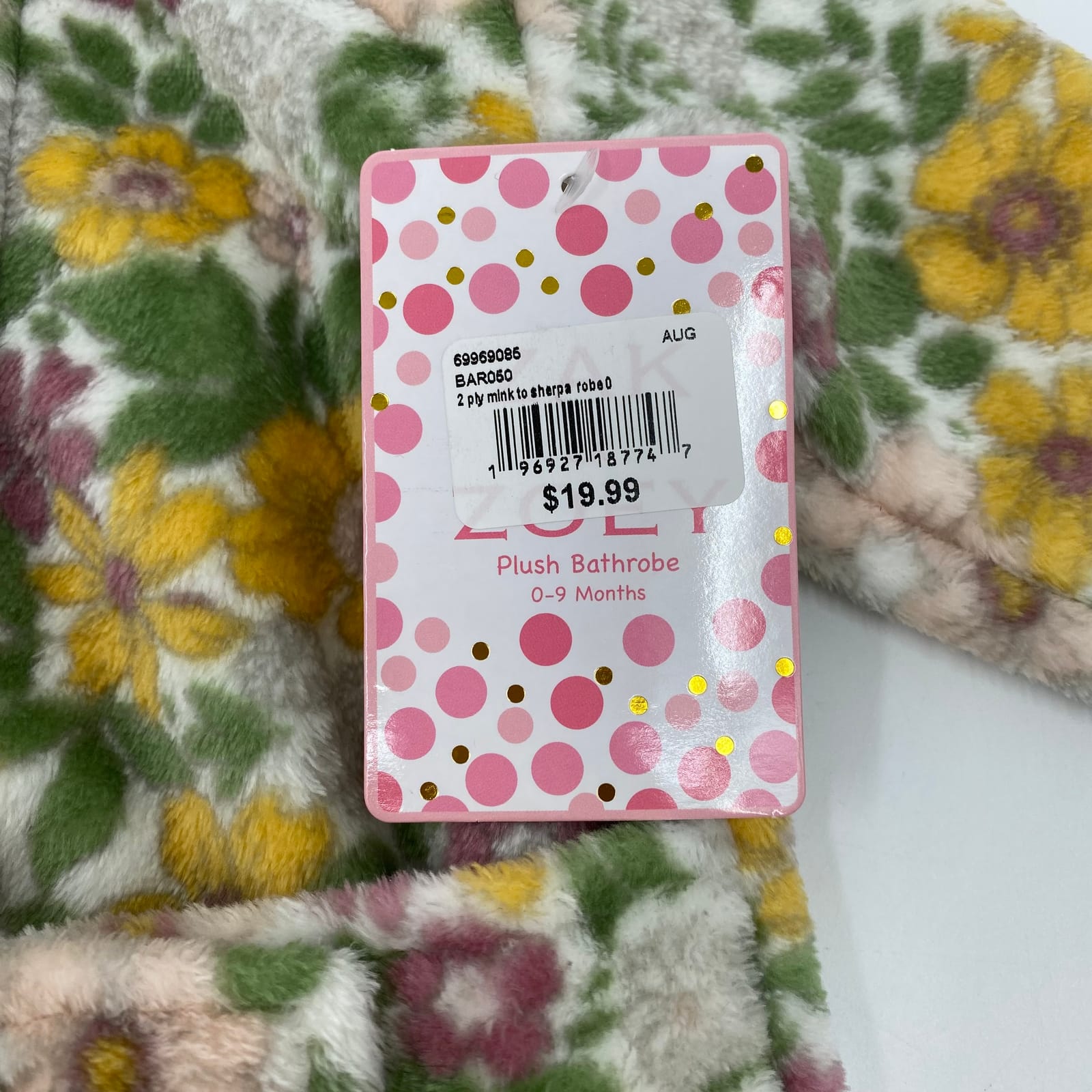 This soft plush robe from Zak & Zoey keeps your little one cozy from chilly mornings to bedtime. The green and yellow floral print adds a touch of sweetness, while the plush fabric feels gentle against delicate skin. Easy wrap design and secure tie ensure comfort all day long. Features: - Plush polyester for warmth and softness - Floral print in green and yellow - Easy wrap robe with adjustable tie - Ideal for baby’s cold-season wear and cozy evenings - New with tags, in-store availability - Inventory: PB A snug favorite for everyday warmth.