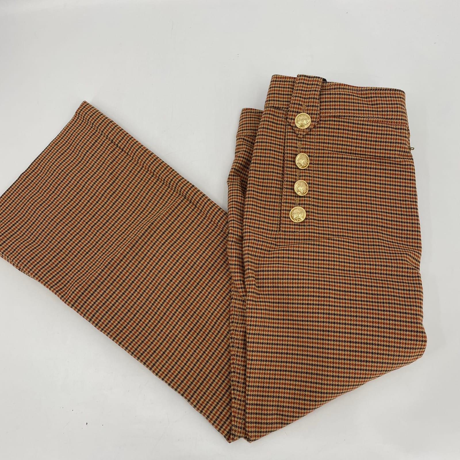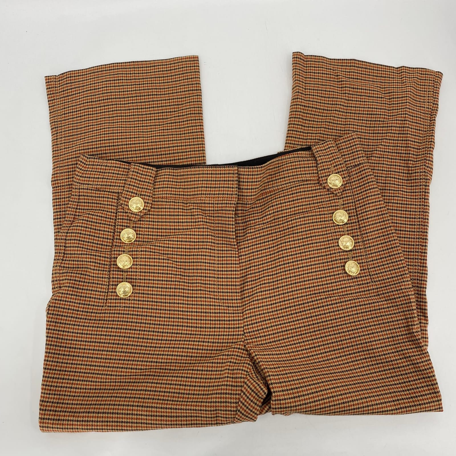 10 Crosby Derek Lam Beige Orange Printed Gold Buttons Pants