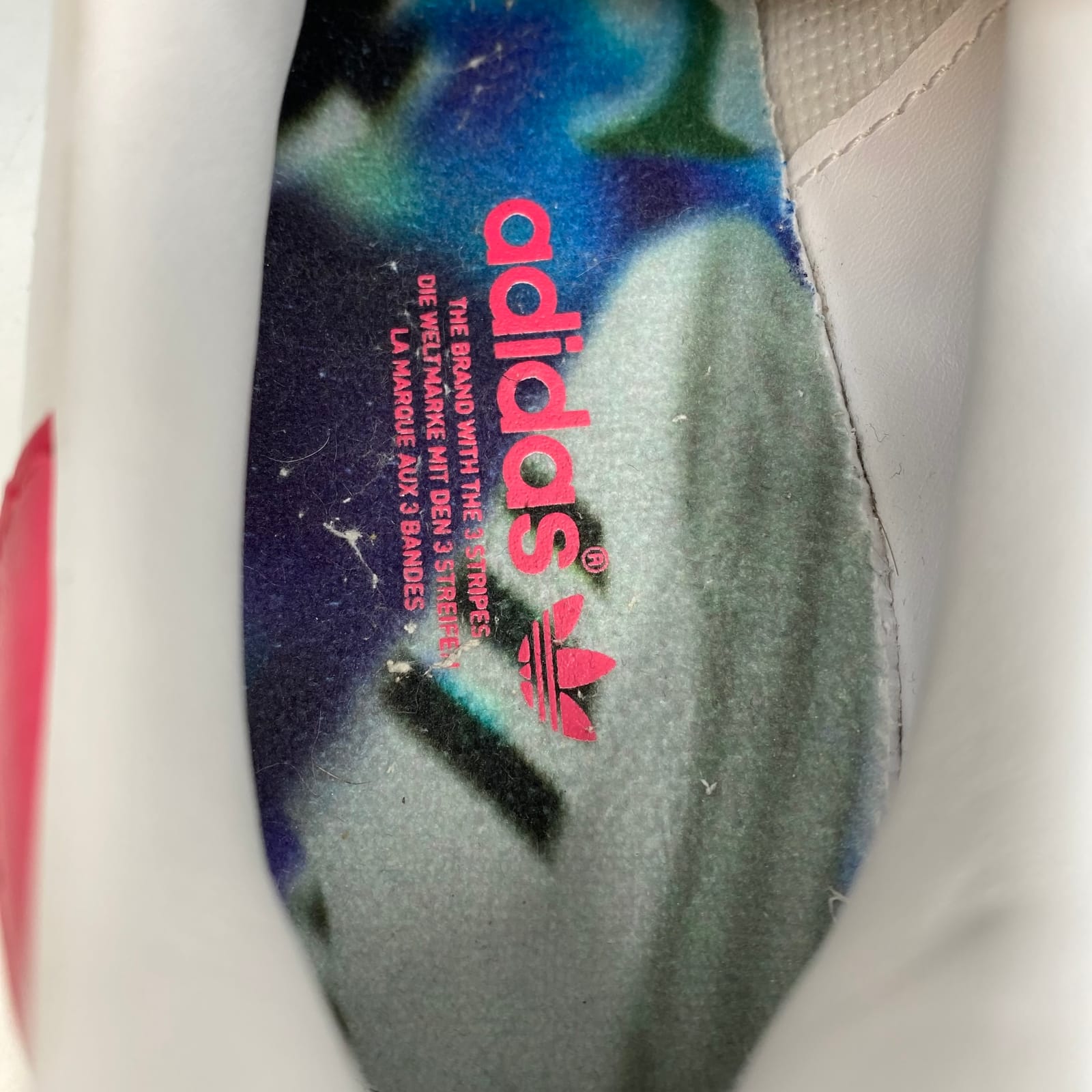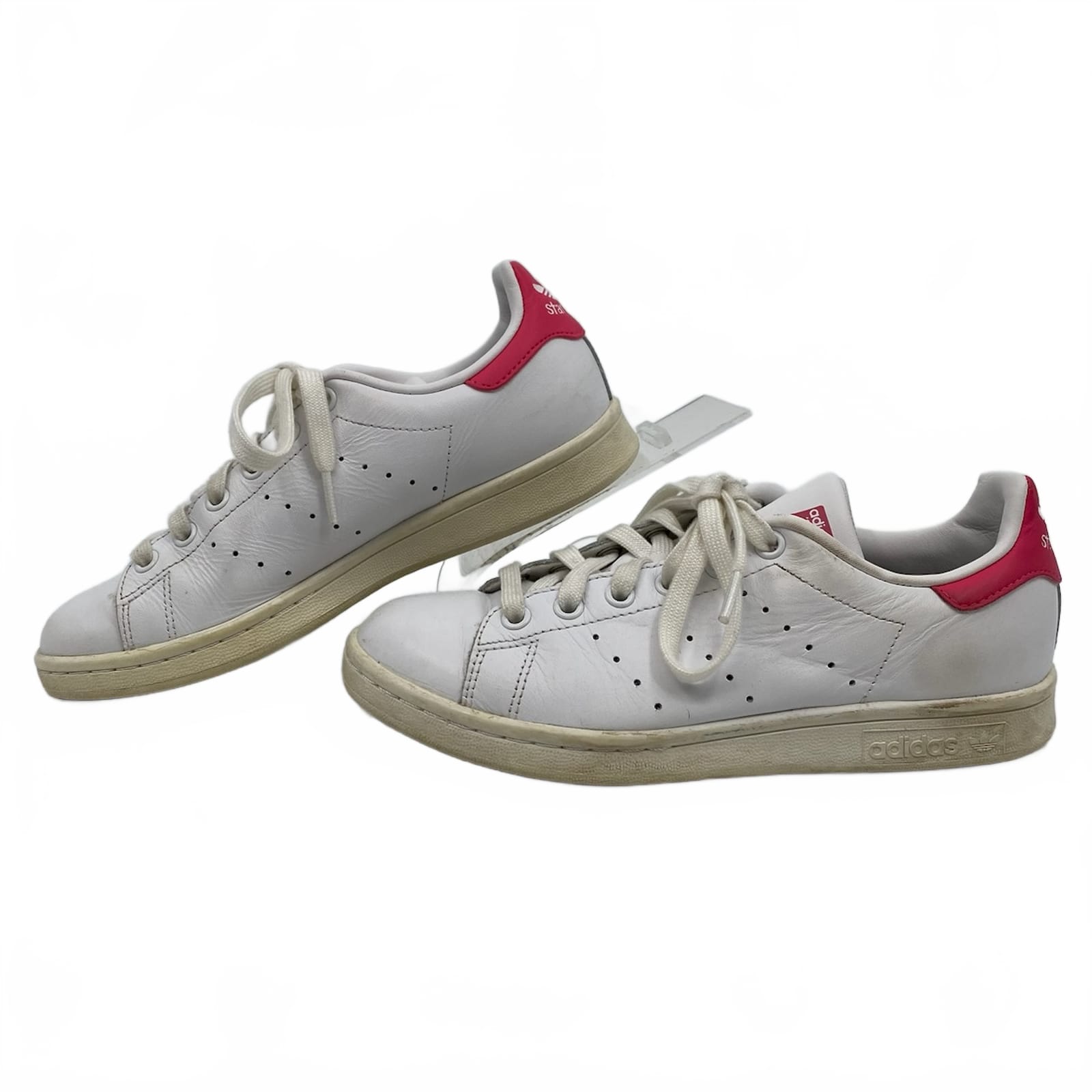 This classic adidas Stan Smith sneaker blends clean white leather with a soft pink accent for everyday wear. Lightweight, comfortable, and versatile, it pairs with jeans, skirts, or workouts, making it a reliable go-to for any season. Durable leather upper and easy-glide rubber sole keep you moving from errands to workouts with confidence. Features: - Leather upper for durability - Classic Stan Smith silhouette - Solid white with pink accents for a subtle pop - Regular US Women’s size 6 for easy fit - Suitable for year-round wear and versatile styling - Flaws: Scuffs and some yellowing on soles, as well as some scuffs on outer sides of ankles, as pictured. - Inventory: 1139283 A limited find—step into a timeless look before it’s gone.