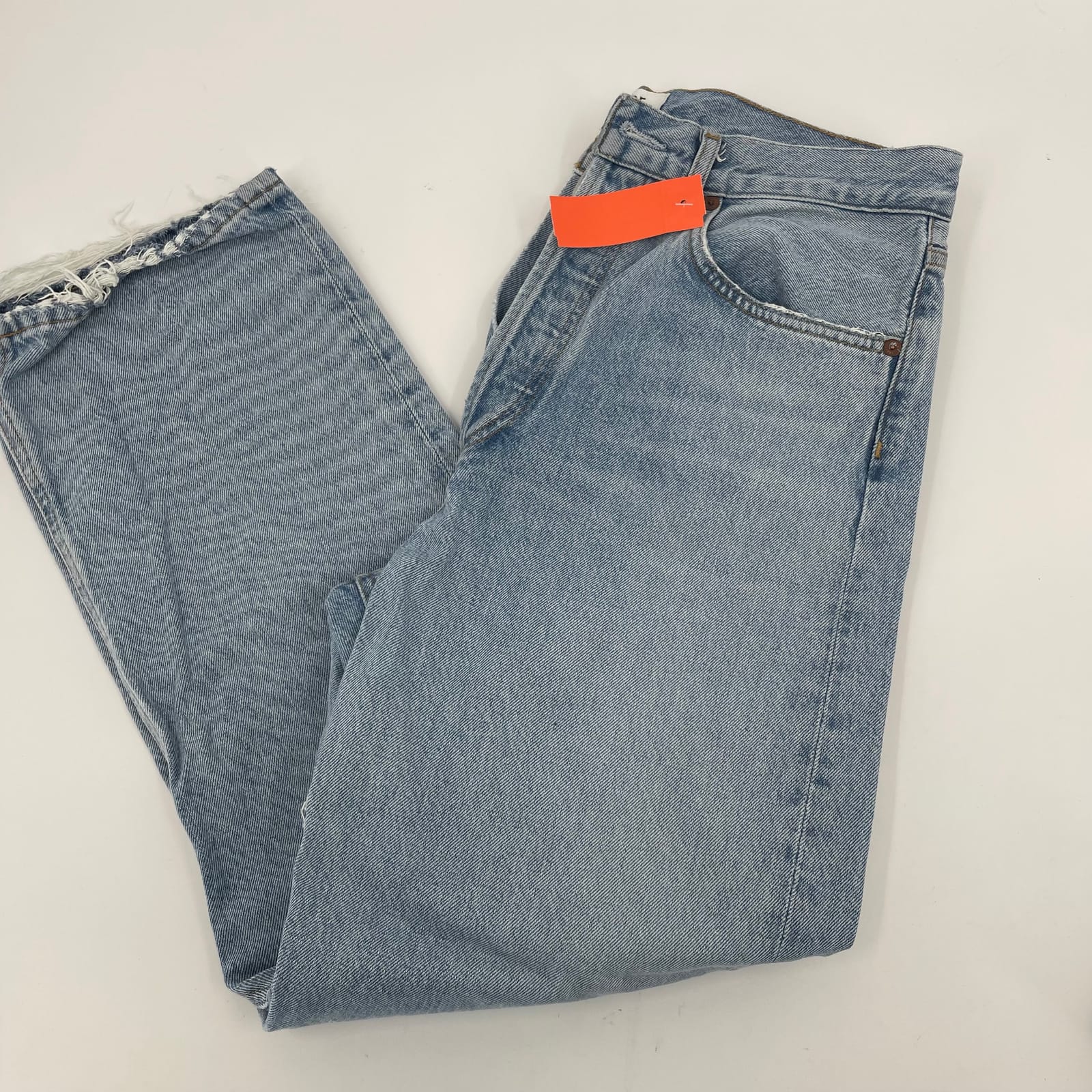 Step into the casual chic world with these Agolde Blue High-Rise Wide-Leg Distress Denim Jeans. Made with 100% cotton, these jeans are perfect for any season, any occasion, and any style - from classic to casual. Their light fabric wash and distressed design add a touch of rebellious charm to your look, making you the showstopper wherever you go. Made in Turkey, these jeans speak volumes about your exquisite taste in fashion. Features: - High rise fit for a flattering silhouette - Made from 100% cotton for ultimate comfort - Versatile light fabric wash perfect for any season - Stylish distressed design for a rebellious charm - Suitable for any occasion, from casual hangouts to classic events - Measurements: Inseam Measurement: 12, Rise Measurement: 24, Waist Measurement: 34 - Inventory: SW#8 16313-30 Don't miss out on the opportunity to own these fabulous Agolde Blue Distress Denim Jeans. They're more than just a piece of clothing - they're a statement of style. Hurry, add them to your cart today and step into a world of effortless chic!