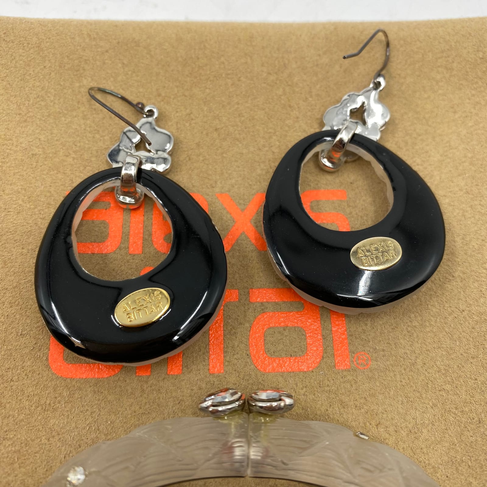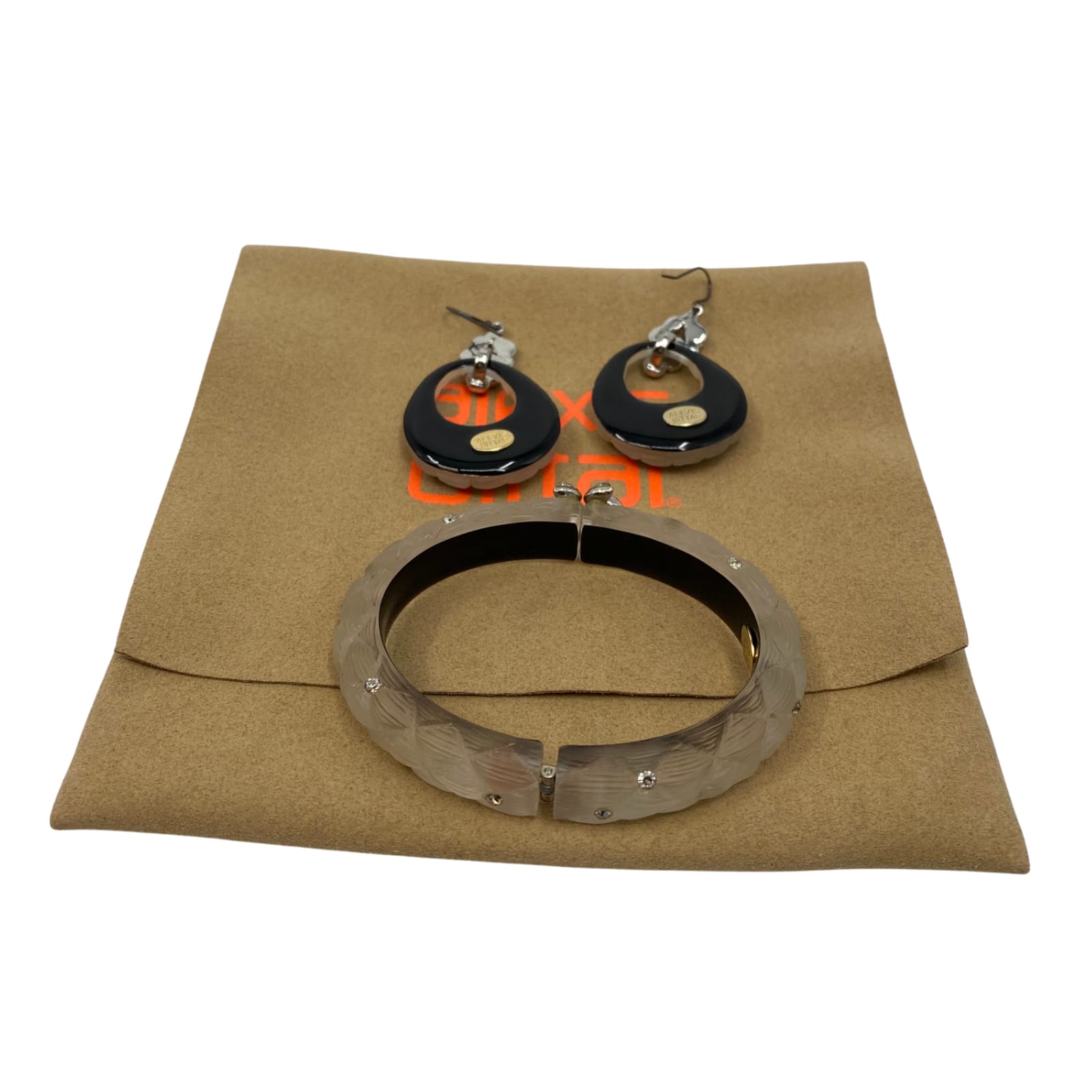 Alexis Bittar Beige Silver Bangle Bracelet Earring Set