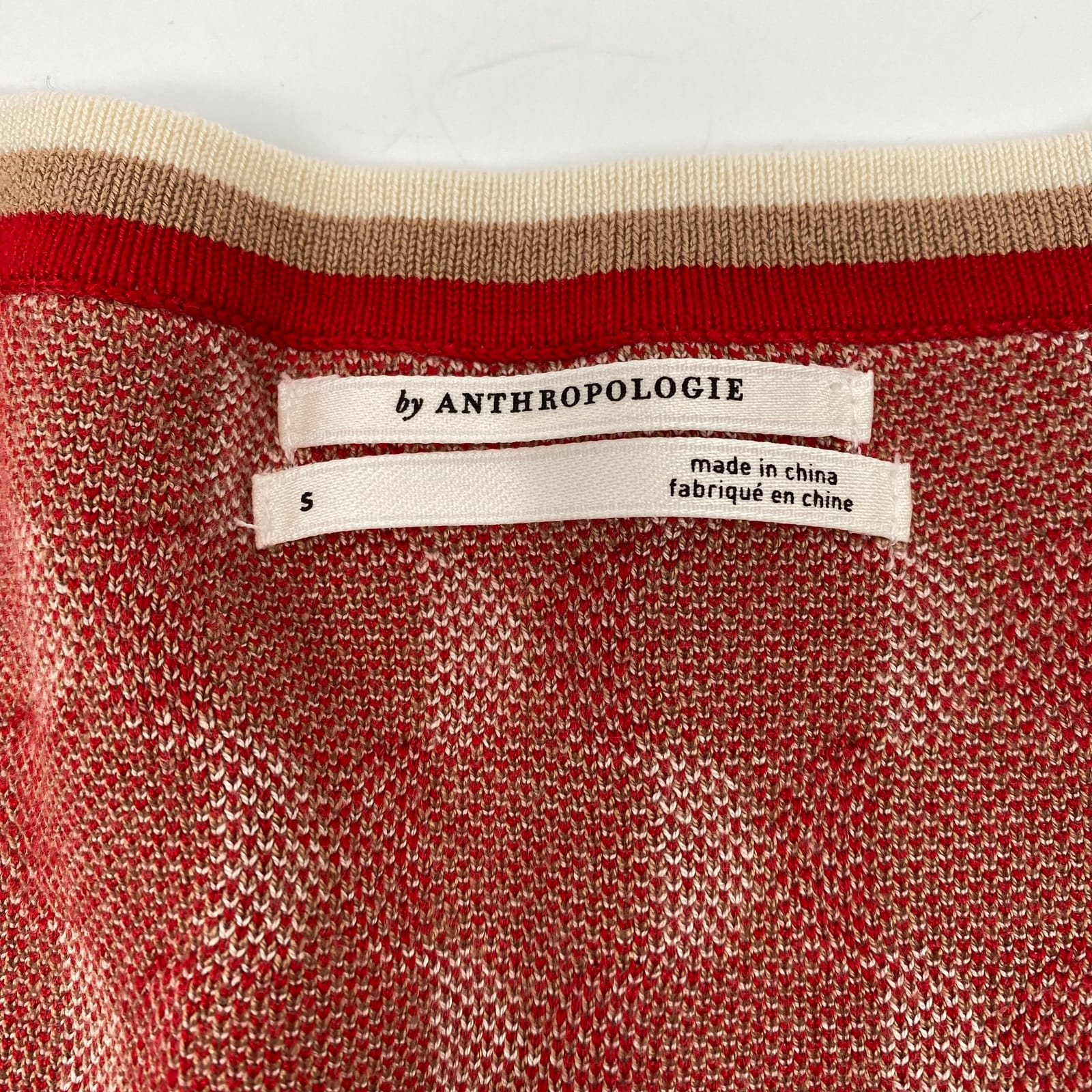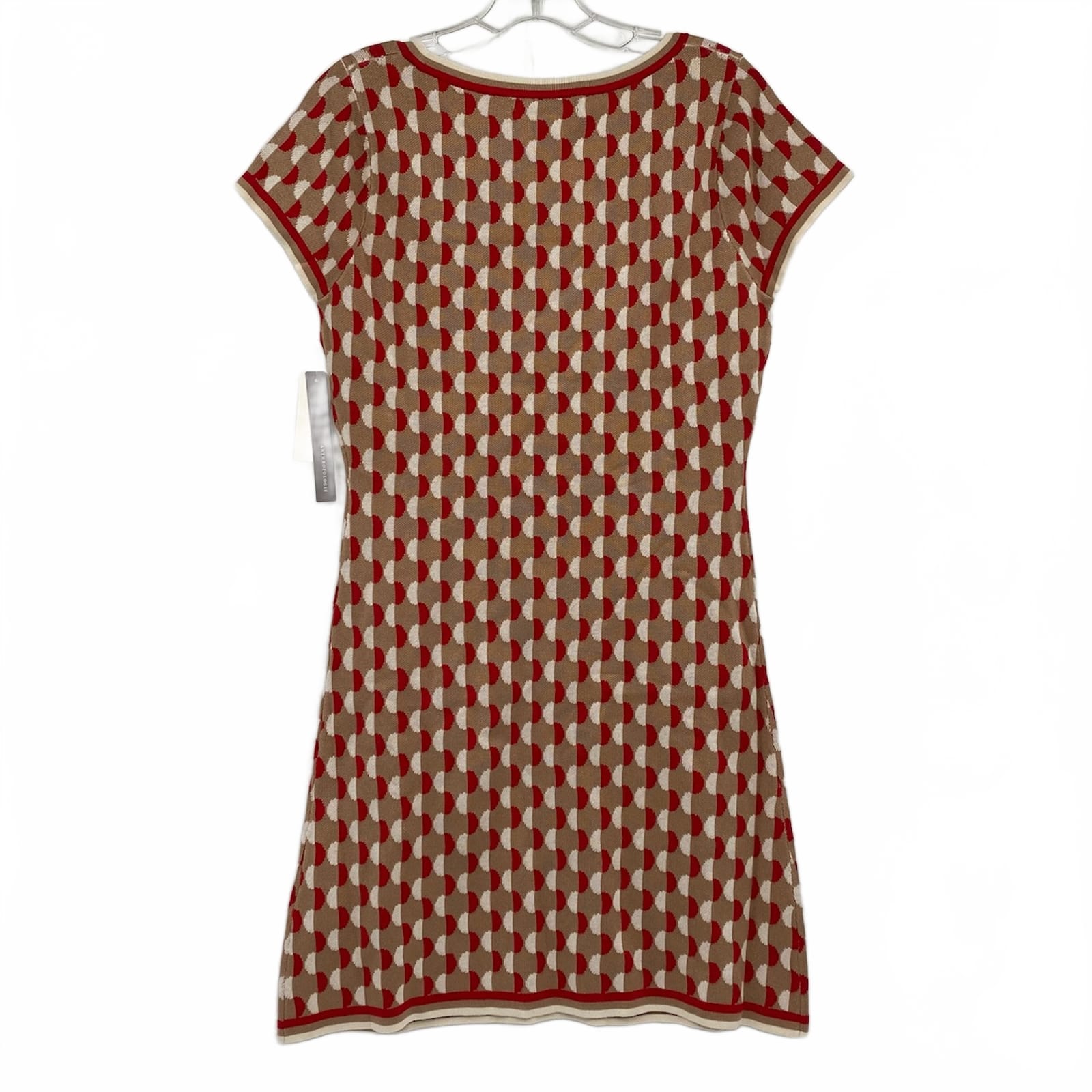 Anthropologie Red Tan Geometric Pattern Knit Mini Dress | S