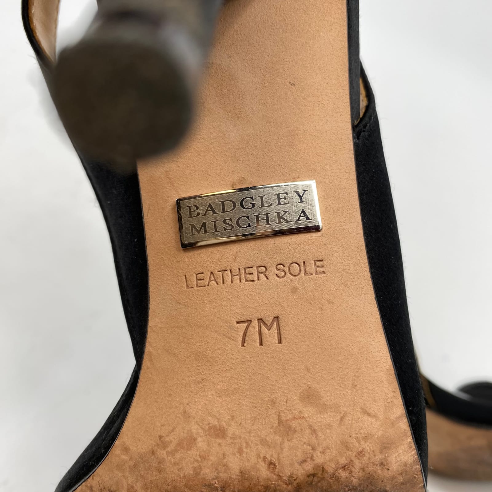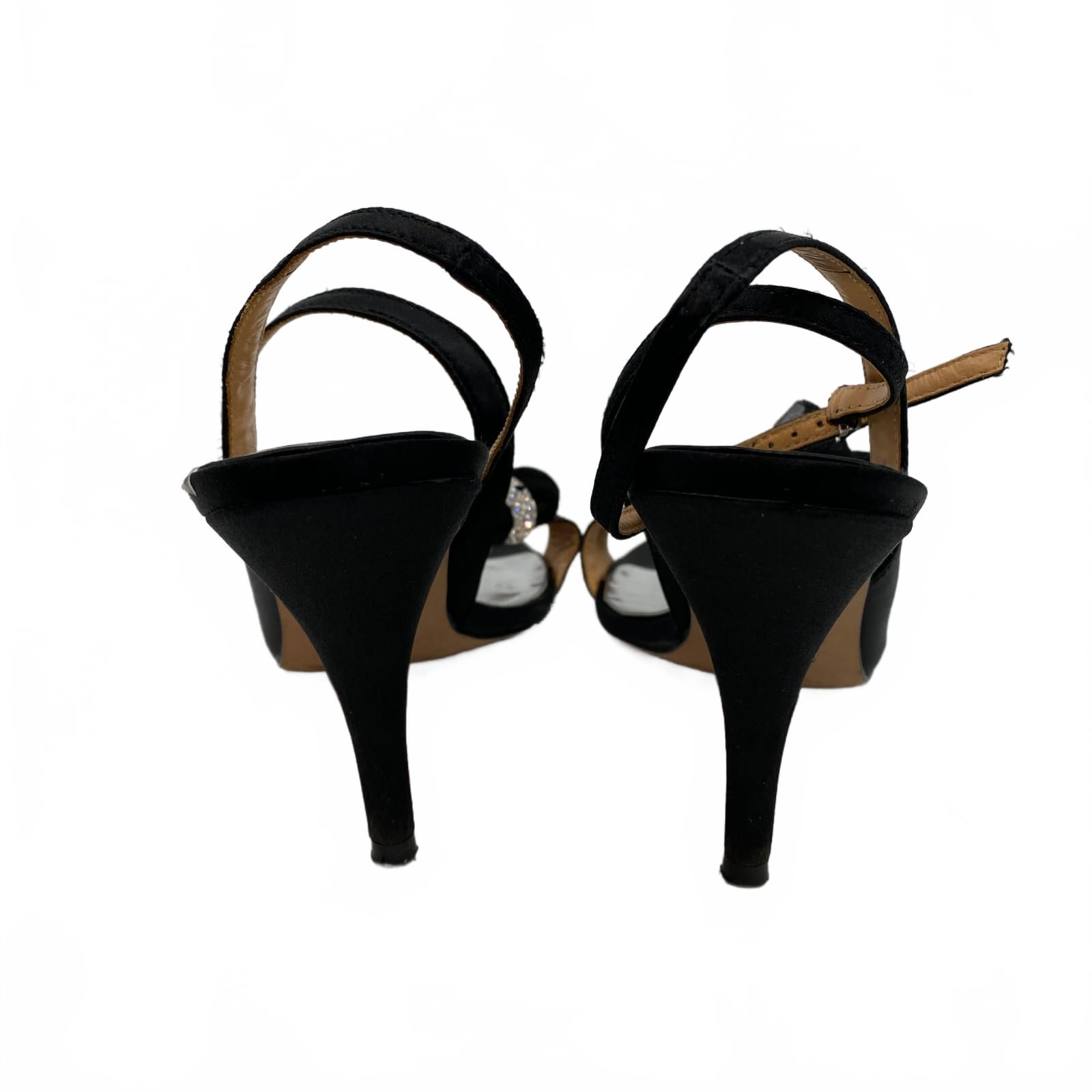 Step into elegance with these Badgley Mischka black strappy heels. A wrap-around ankle strap keeps you secure while the rhinestone accents catch the light from every angle. Made with a leather and synthetic upper, they pair effortlessly with dresses, skirts, or tailored pants for any occasion. Comfortable enough for all-day events, they elevate your look from simple to sophisticated in an instant. Features: - Leather and synthetic upper for durability and shine - Wrap-around ankle strap for secure, stylish fit - Rhinestone accents add subtle sparkle - Classic black tone pairs with any outfit - Regular US size 7 for versatile wear across seasons - Inventory: 1139395 This is the pair that completes your polished, party-ready look.