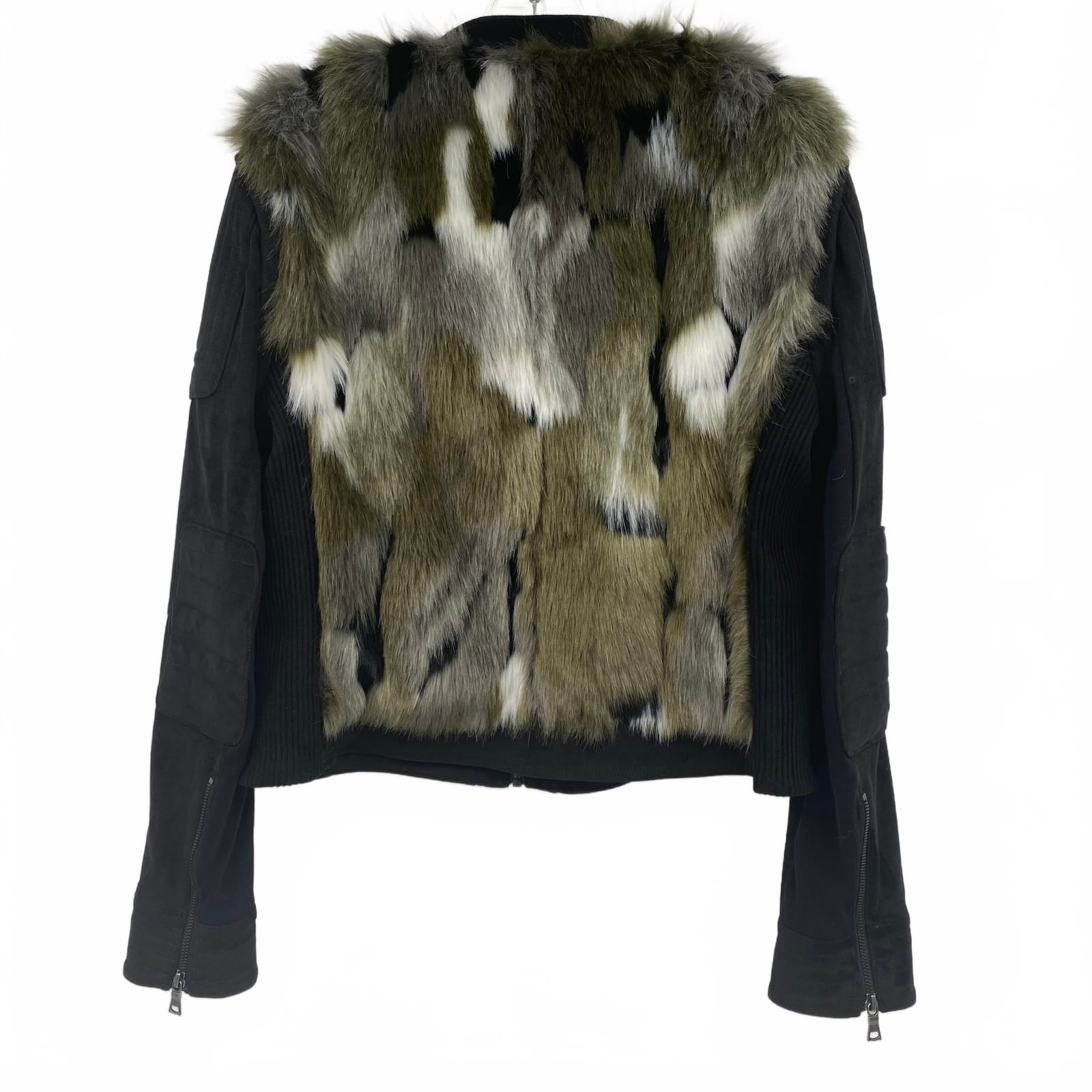 BCBGMaxAzria Black Green Faux Fur Jacket