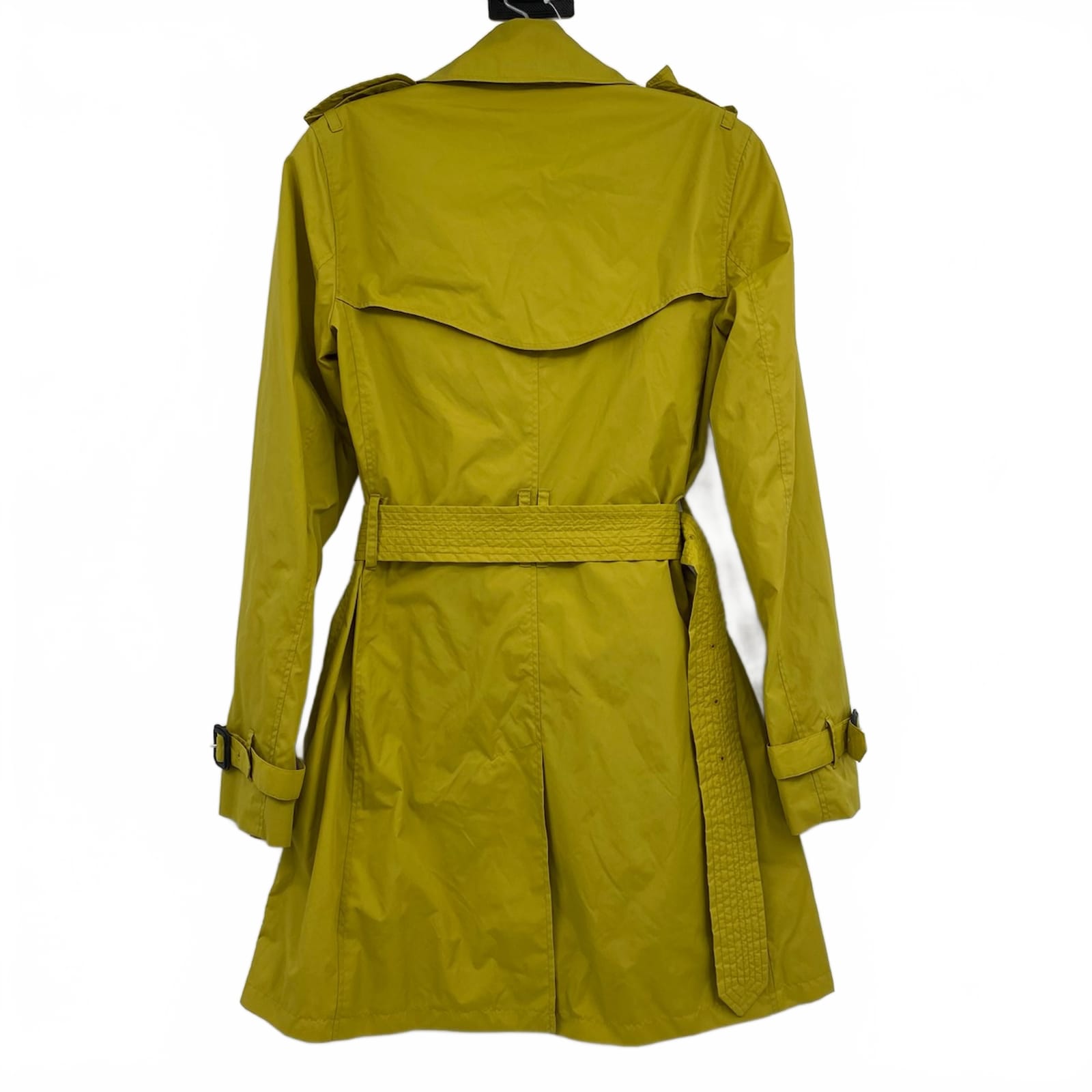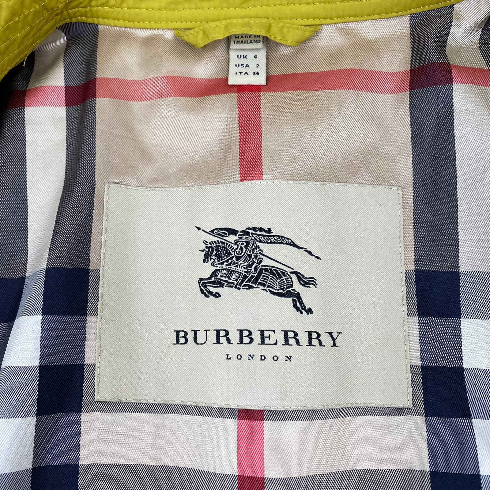 A classic Burberry pea coat in chartreuse green blends timeless silhouette with modern color. This woven nylon shell coat delivers warmth for Winter and cool coverage for Spring and Fall, with a clean solid pattern and versatile fit. Designed for everyday polish, it pairs with jeans, dress pants, or a chic dress, elevating your outerwear with a refined silhouette and practical durability. Features: - Nylon outer shell for durability - Polyamide and polyester blend for structure - Classic pea coat silhouette - Solid color adds versatile styling options - Made in Thailand for quality craftsmanship - Approx. Measurements: Pit To Pit: 18 in, Length: 32.5 in - Flaws: Some pink marks on end of right sleeve and one small spot on front near right side of collar, as pictured. - Inventory: 1137279 A rare Burberry piece that elevates any wardrobe—act before it travels off the floor.