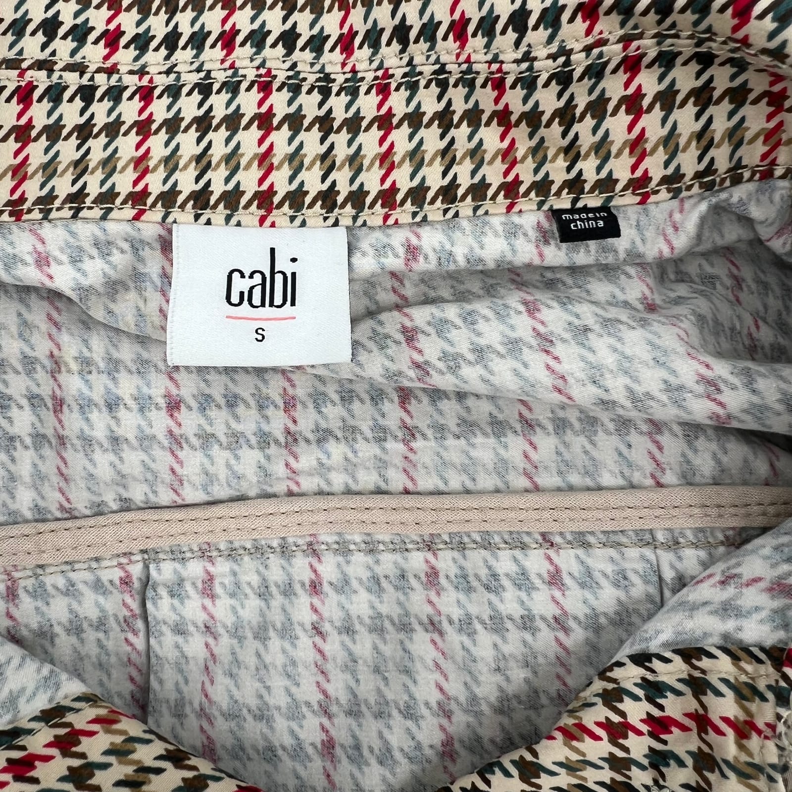 Cabi Trench Coat Tan/Red Houndstooth | S