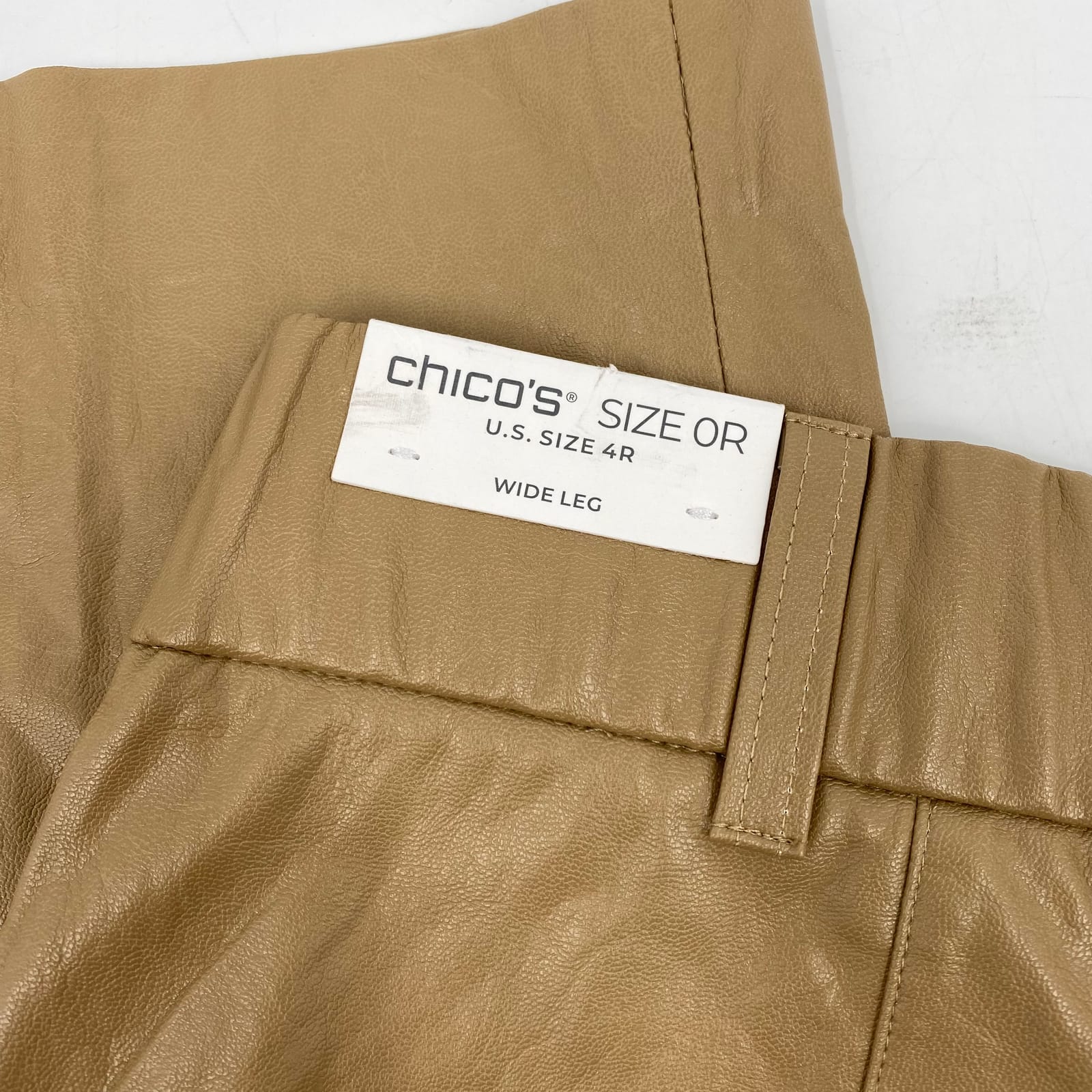 Elevate your style with these chic Chico's pleather wide leg pants. Designed for any occasion, these versatile bottoms offer a sleek silhouette that's perfect for everything from brunch to evening outings. The soft, supple material drapes beautifully while providing all-day comfort. Pair them with a fitted top for a polished look or a casual tee for effortless style. Features: - Crafted from a blend of polyurethane, viscose, and polyester - Mid-rise waist for a flattering fit - Wide-leg design adds movement and elegance - Solid pattern makes it easy to pair with various tops - Suitable for year-round wear - Approx. Measurements: Inseam Measurement: 25 in, Waist Measurement: 29 in, Rise Measurement: 10 in - Inventory: 1122598 This is the statement piece your wardrobe has been waiting for.