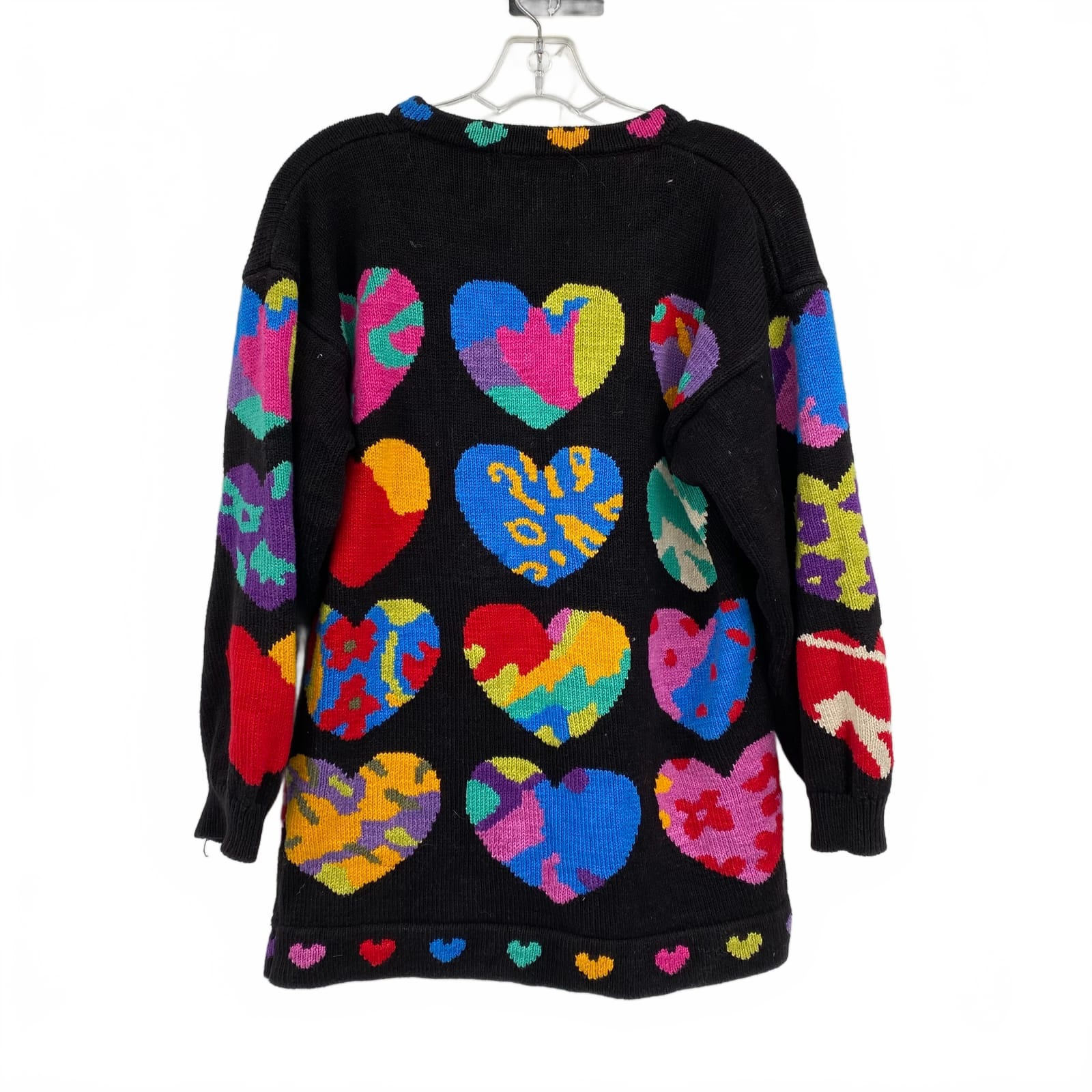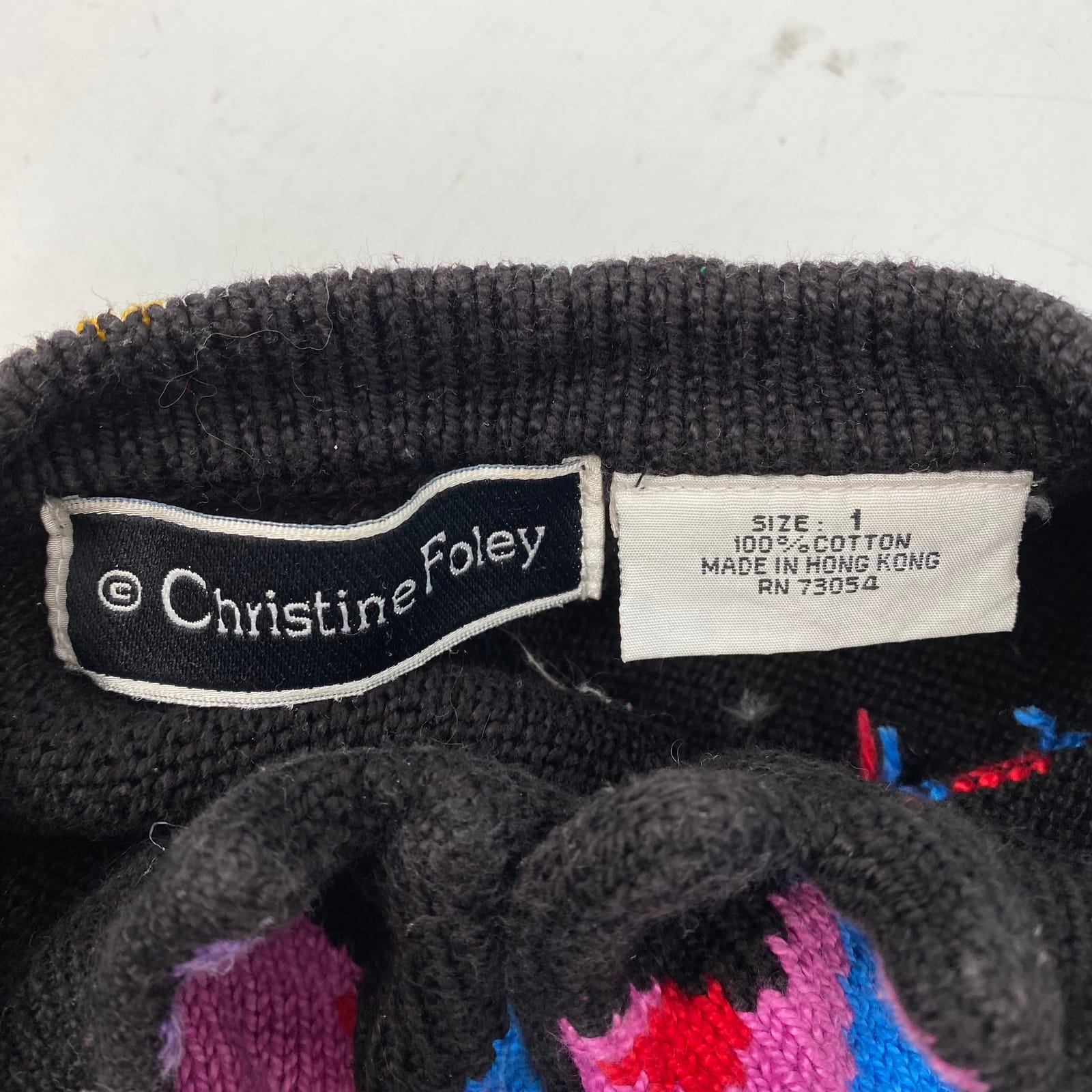 This black heart-print cardigan from Christine Foley is a comfy staple you’ll reach for across the seasons. Made from 100% cotton in Hong Kong, it’s soft to the touch and easy to layer over tees or blouses. Perfect for cooler mornings or a polished nod to casual looks, its classic cardigan silhouette feels effortless yet put-together. Expect light wear typical of a pre-loved item, with washable care to keep the heart motif crisp. Features: - 100% cotton for breathability and softness - Classic cardigan silhouette for versatile styling - Heart print adds a playful, timeless touch - Made in Hong Kong with durable knit construction - Regular size, suitable for everyday layering across seasons - Approx. Measurements: Pit To Pit: 19.5, Length: 25 - Flaws: Small signs of wear, should come out in Wash - Inventory: 1139264 A limited find that brings a timeless touch to your wardrobe.