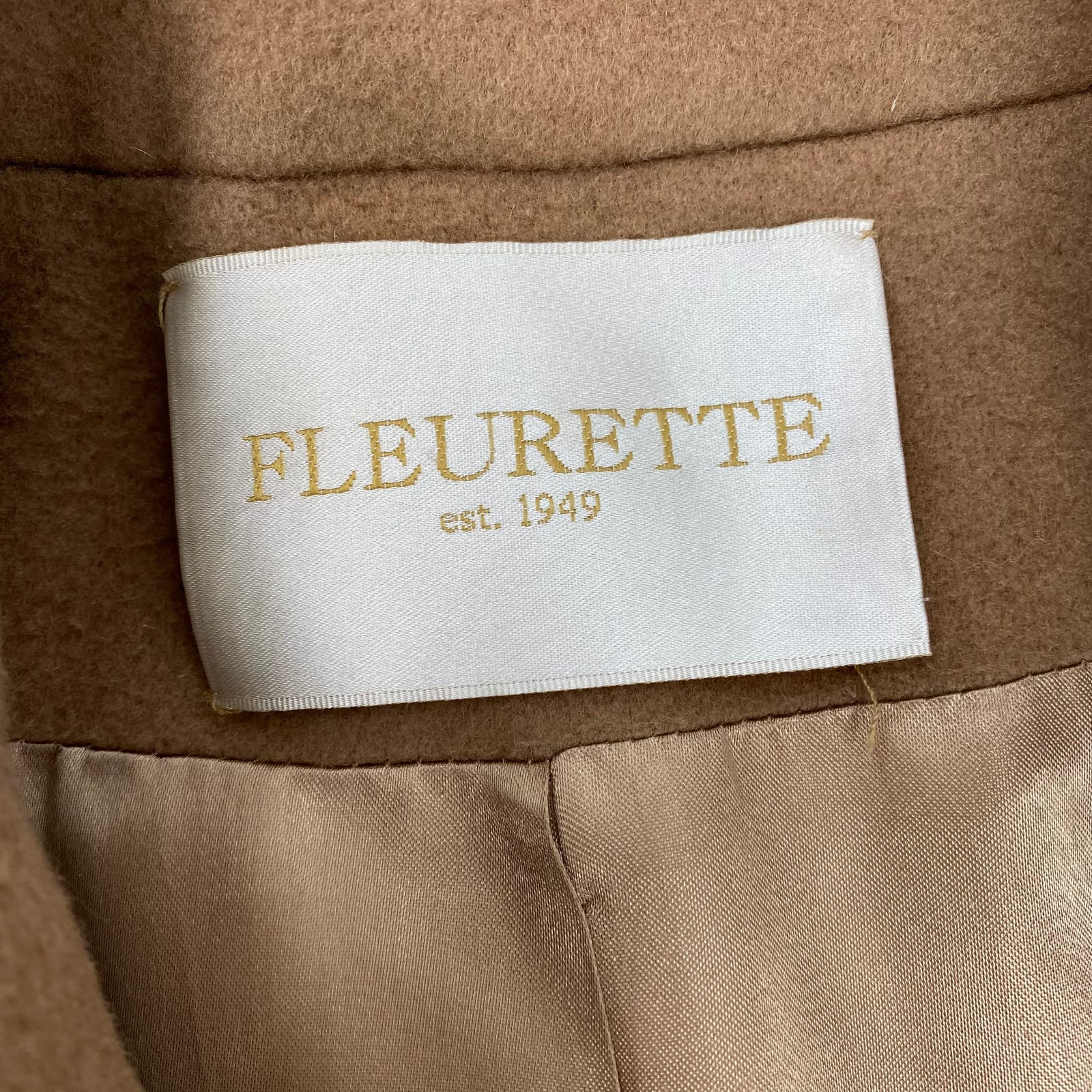 This Fleurette trench coat brings classic elegance to every season. Crafted in the United States from 100% wool, it feels substantial yet refined, perfect for elevating workwear or weekend looks. The tan color pairs easily with dresses, trousers, or denim, and the silhouette offers clean lines and timeless flair. A tiny hem gap is noted, but the coat remains a polished, versatile staple for transitional weather and beyond. Features: - Made in the United States from 100% wool - Outer shell and lining crafted for a structured silhouette - Classic trench style with versatile tan finish - Suitable for Fall, Spring, Winter and even cool Summer days - Regular size 8 with a clean, tailored fit - Approx. Measurements: Pit To Pit: 19, Length: 35.5 - Flaws: Tiny gap near hem - Inventory: 1139232 Act now before this classic finds a new owner.