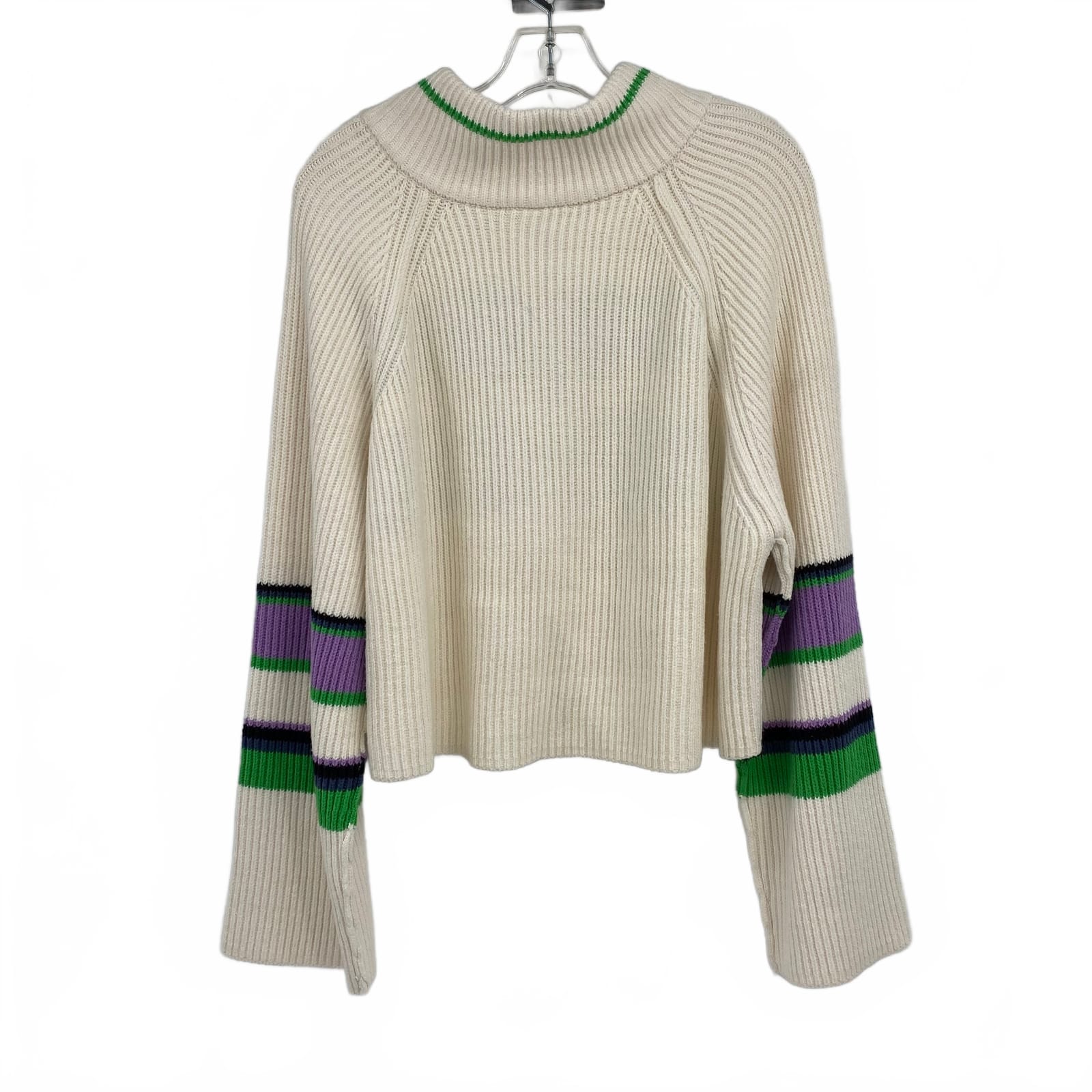 Free People White/Purple Stripe Cotton Blend Pullover | M