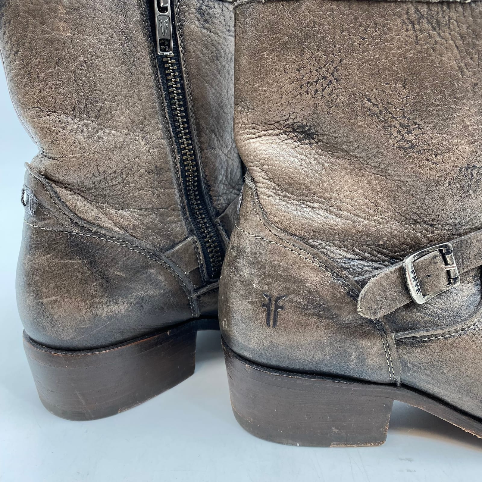 Step into timeless footwear with these Frye Lynn short strap leather ankle boots. Crafted in Mexico from durable brown leather, they pair easily with jeans or dresses for a polished, everyday look. Expect a sturdy silhouette, comfortable fit, and classic leather texture that ages beautifully with wear. Features: - Made in Mexico from full-grain leather - Leather upper with functional strap detail - Regular US size 6 for women - Solid brown bootie with classic, versatile styling - Excellent everyday boot for winter to fall wear - Flaws: Scratches and wear on toes and heels, as pictured. - Inventory: 1137339 A rugged staple that ages with you, grab them before they’re gone.