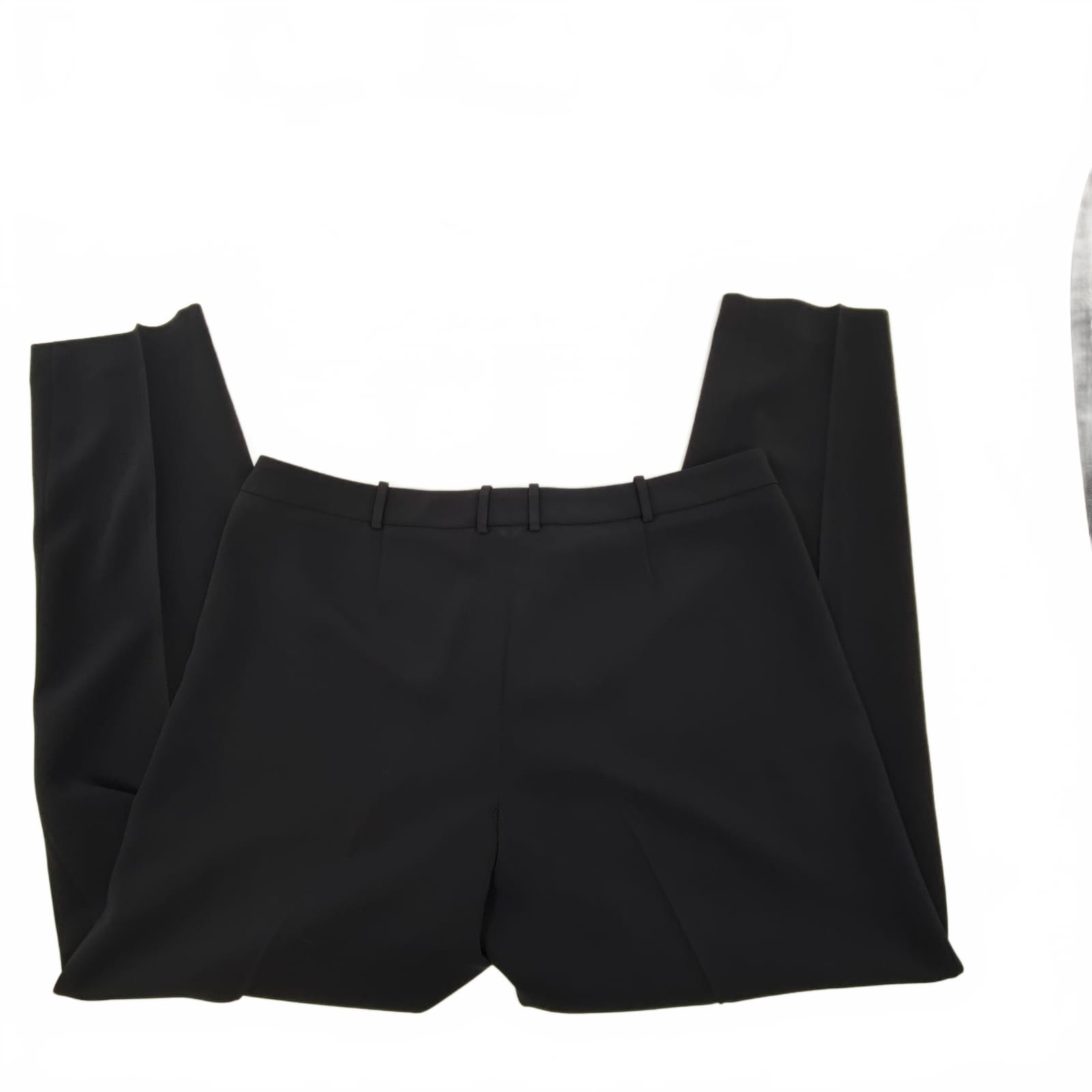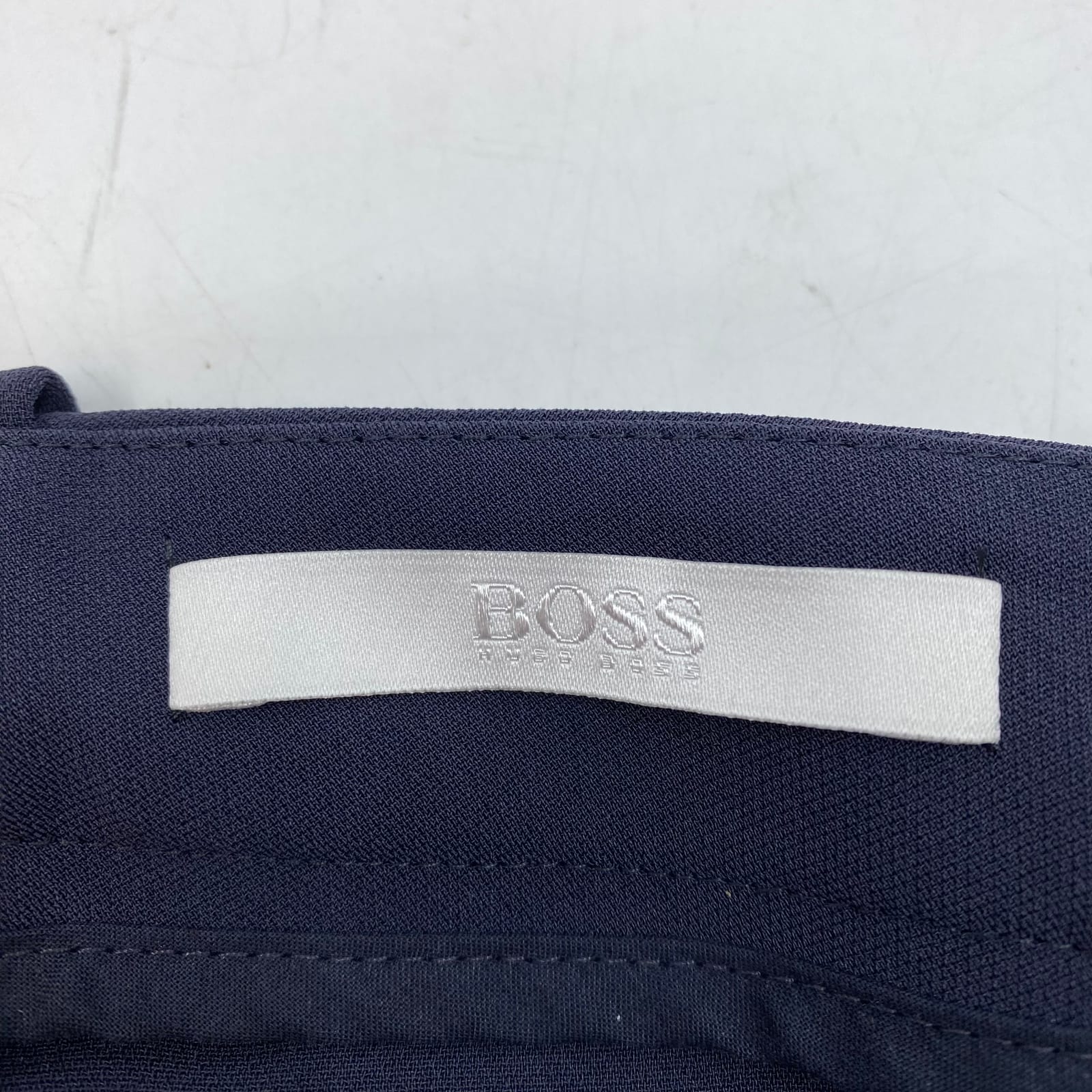 These Navy Hugo dress pants blend polished, professional style with practical wear. Made in Turkey from durable polyester, they offer a clean, tailored silhouette suited for business and formal settings. Perfect for winter through fall, they pair effortlessly with a blouse or blazer for a crisp office look. Note the back seam stitching detail as pictured. Features: - Made in Turkey - Polyester fabric for durability and easy care - Formal dress pants with tailored fit - Suitable for business and office wear year-round - Regular size 10 with versatile styling - Approx. Measurements: Inseam Measurement: 29, Waist Measurement: 18.5, Rise Measurement: 11 - Flaws: Loose stitching on the back seam, as pictured - Inventory: 1142177 A refined choice for your work wardrobe—limited stock available.