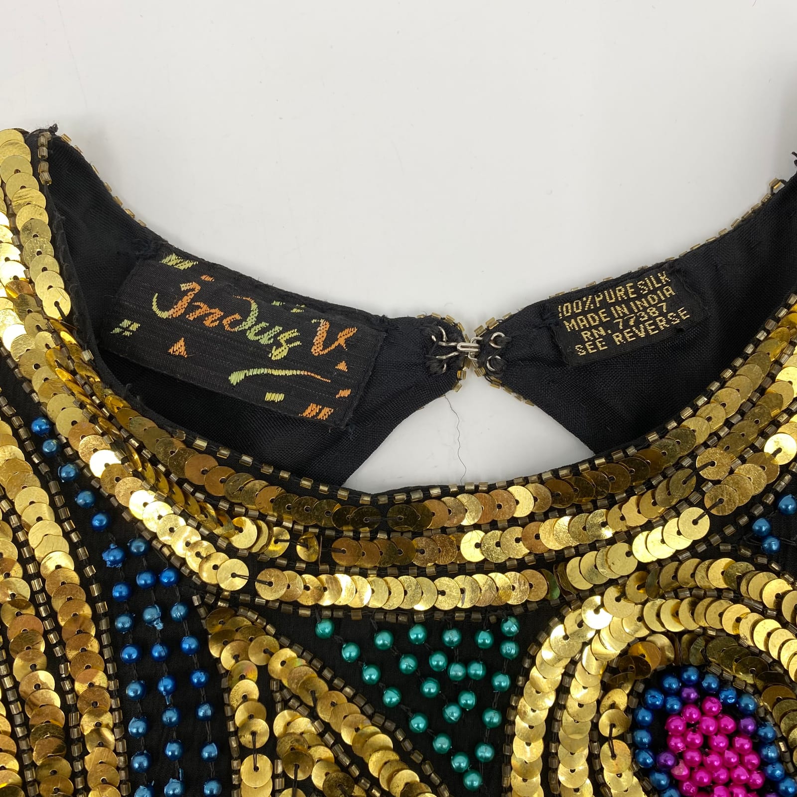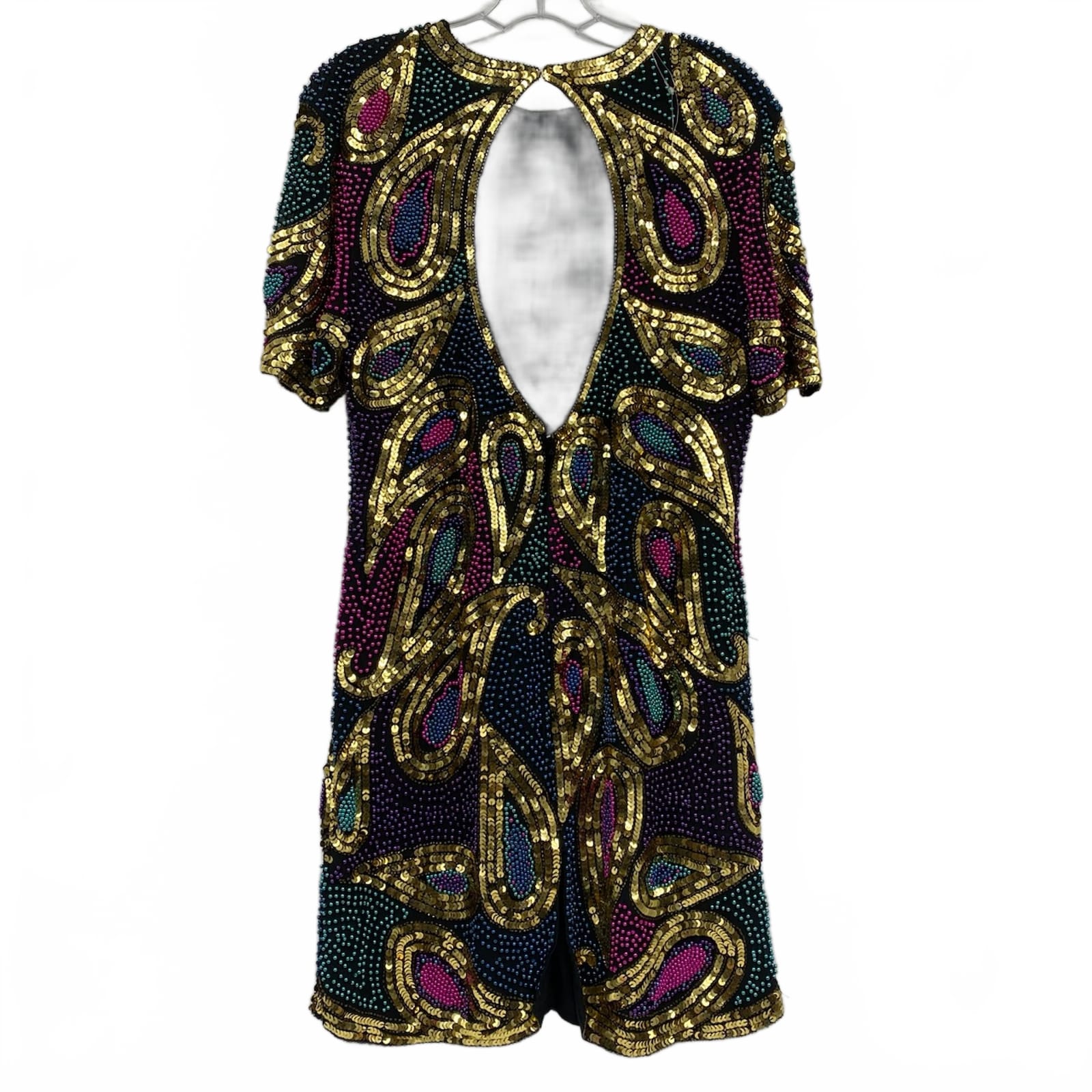 This Indus V mini dress blends gold and purple with vintage sparkle for any party or special occasion. Crafted in silk, it feels luxe against your skin while the beaded and sequin accents catch the light with every move. The short length keeps the look flirty and chic, perfect for winter through summer events. Wear it with simple heels and a clutch for a polished, modern ensemble. Features: - Made in India from silk for a smooth, luxurious feel - Vintage beaded and sequin embellishments for standout shine - Short mini silhouette that flatters the legs - Solid pattern with elegant metallic accents - Versatile for formal occasions or festive nights - Approx. Measurements: Pit To Pit: 18 in, Length: 35 in - Inventory: 1135521 A limited piece that elevates your evening lineup.