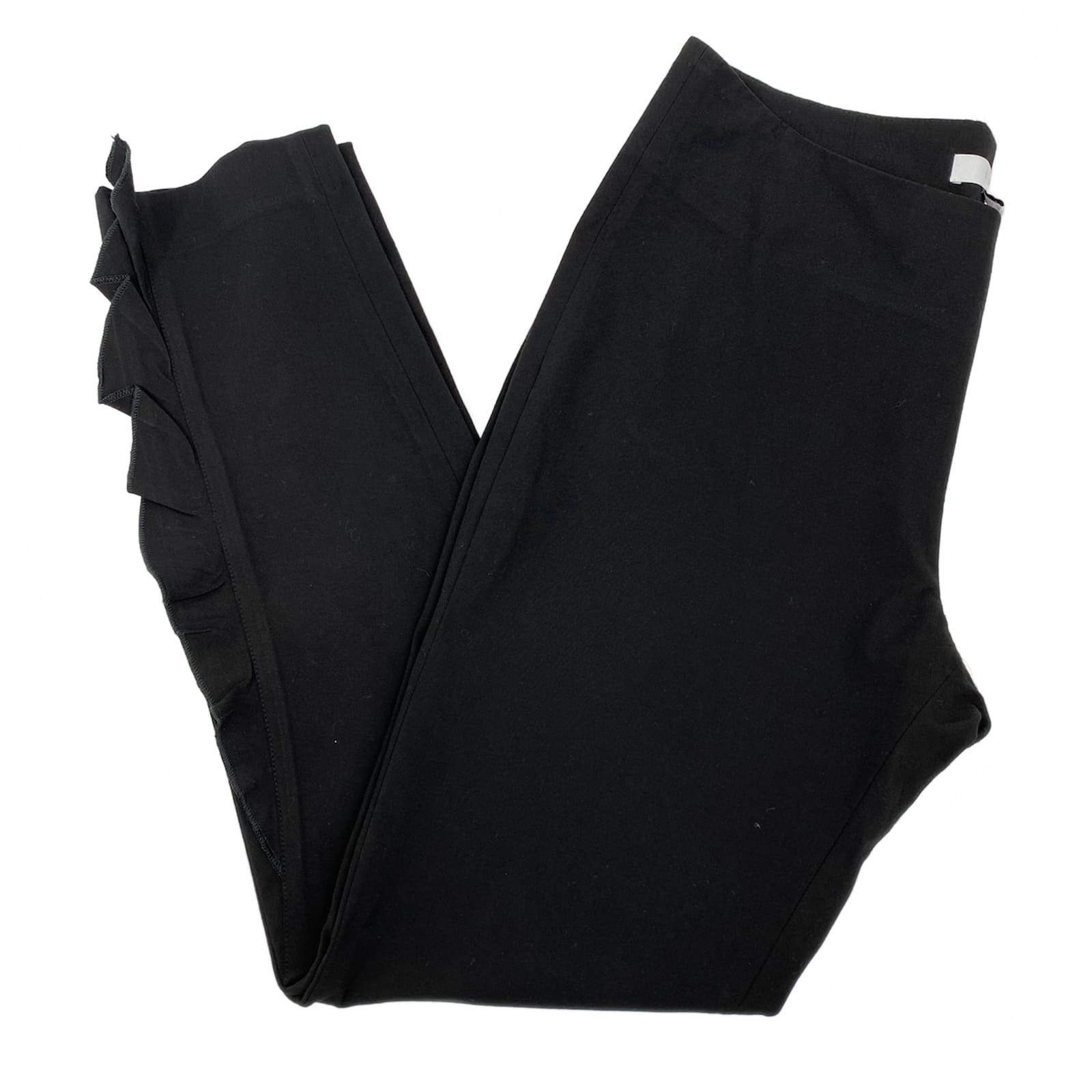 Elevate your wardrobe with these IRO black ruffle leg trousers, the perfect blend of comfort and sophistication. Made from soft viscose, they drape beautifully, making them ideal for any occasion—from casual outings to more polished events. These ankle-length trousers will have you feeling confident and stylish, whether paired with a simple tee or dressed up with a chic blouse. Features: - Crafted from soft, breathable viscose - Ankle length for versatile styling - Elegant ruffle accents for a touch of flair - Suitable for all seasons - Classic solid pattern complements any top - Approx. Measurements: Inseam Measurement: 28 in, Waist Measurement: 31 in, Rise Measurement: 9 in - Inventory: 1132497 Only one like it, and it’s ready for you.