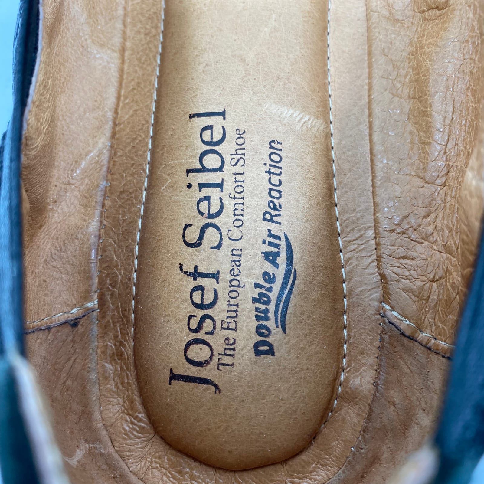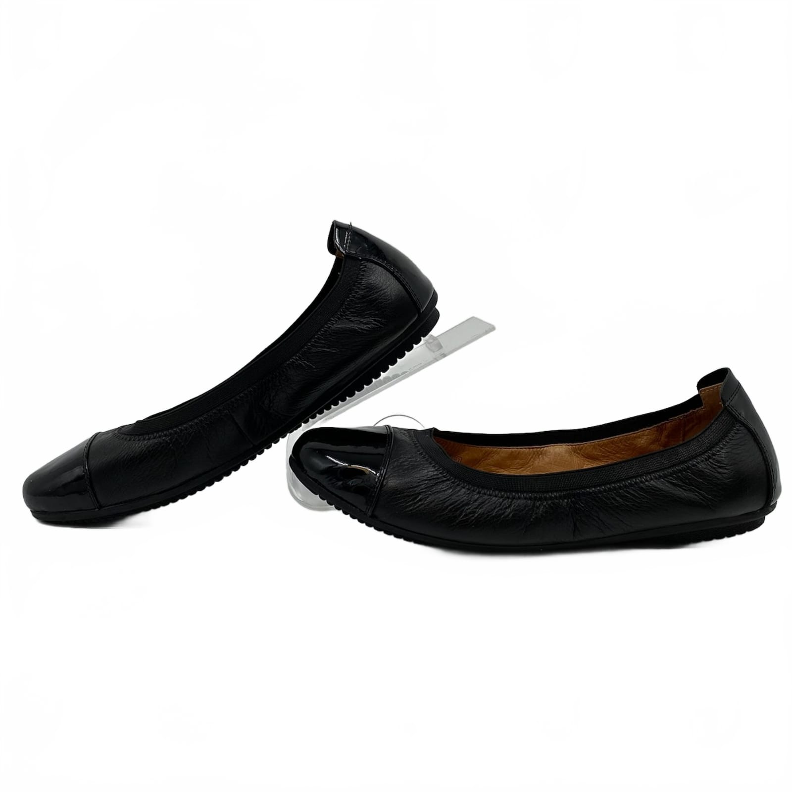 These Josef Seibel cap toe flats fuse classic design with everyday comfort. Crafted in leather with a sleek patent finish, they glide through your day from office to weekend errands. The solid black upper is versatile for any outfit, while the low heel and refined silhouette keep things polished without sacrificing comfort. A tiny scuff on each heel is minimal wear for an excellent, nearly-new pair ready to step into your routine. Features: - Leather upper with patent finish - Cap toe adds timeless polish - Comfortable flat silhouette for daily wear - Made in China with durable construction - EU size 42 (US men’s 11 / women’s 11.5–12 est.) - Flaws: One tiny scuff on each heel, as pictured. - Inventory: 1136124 Don't miss this classic pair that elevates every outfit.