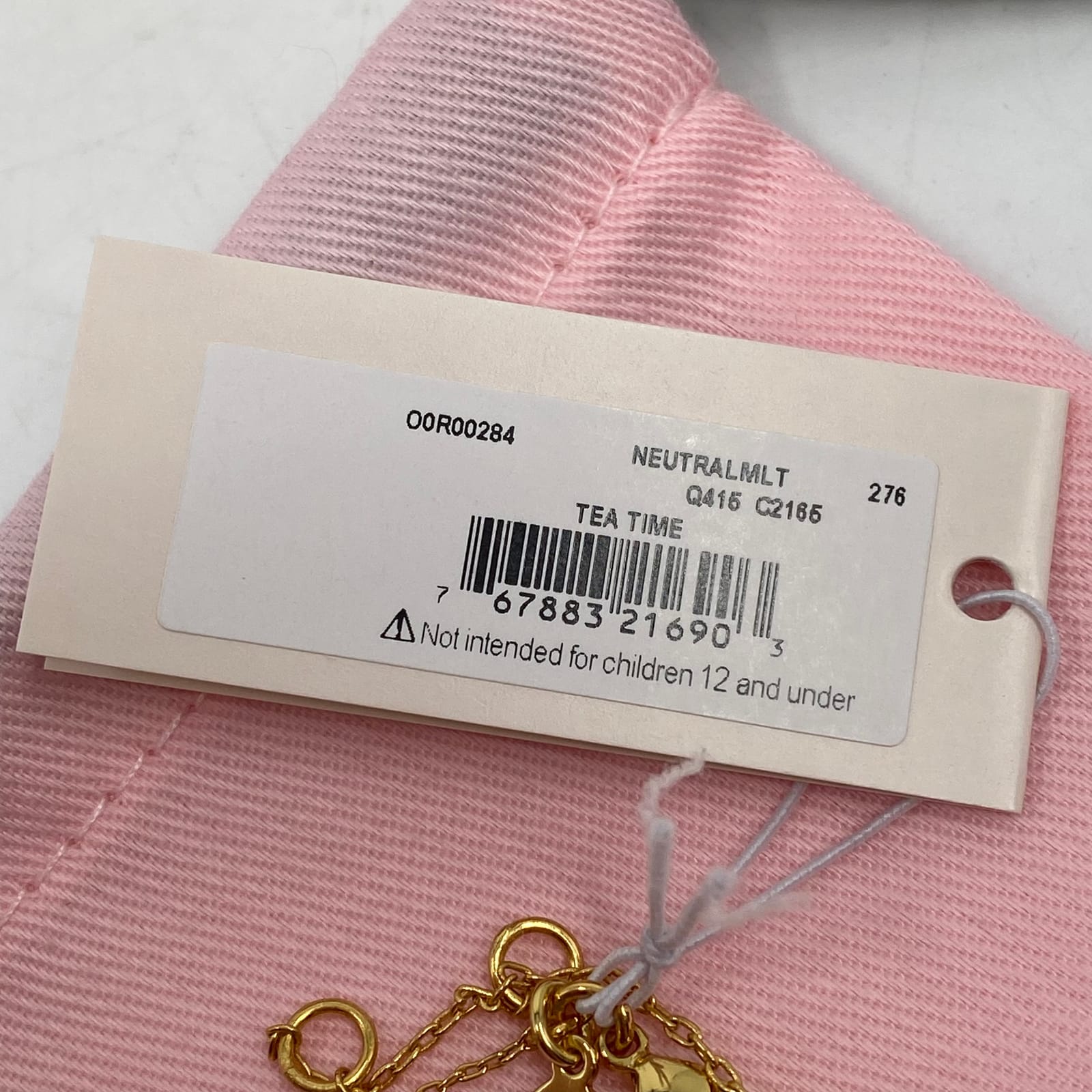 This Kate Spade teacup pendant necklace combines a chic gold and black design with a playful Tea Time motif. Lightweight yet noticeable, it adds a touch of whimsy to your everyday jewelry or a polished look for special occasions. The pendant sits effortlessly on any neckline, perfect for layering with other pieces or wearing solo for a subtle statement. Features: - Gold and black teacup pendant adds whimsy to any outfit - 16in-18.5in chain length - Lightweight pendant necklace suitable for everyday wear - Versatile length for layering or solo styling - Made in China with new-with-tags quality - Solid tea-time motif complements any season - Inventory: 1136593 A delightful accent that elevates your look without shouting for attention.
