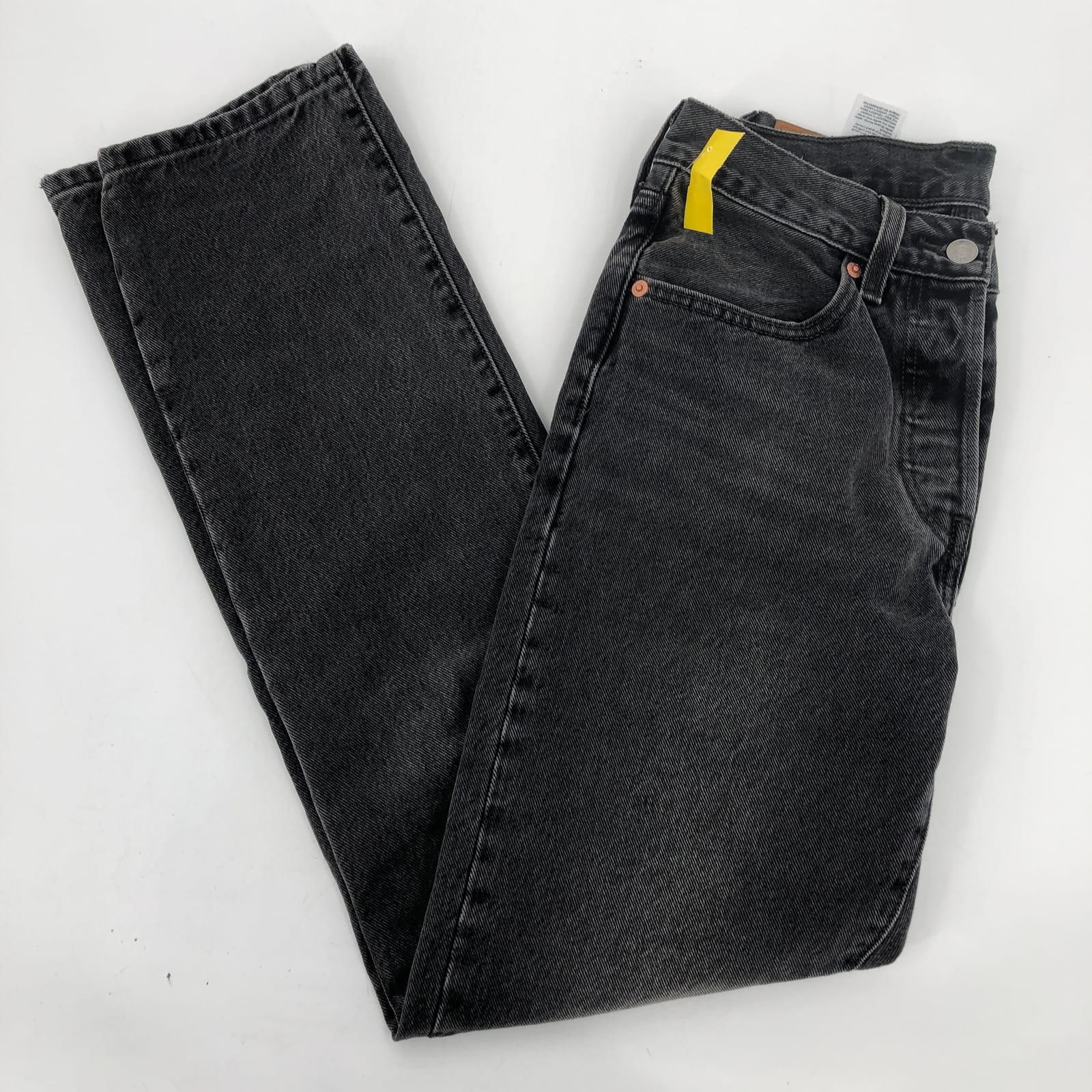 Get ready to bring your jeans game to a whole new level with these Levi's Black Mid-Rise Straight Leg Jeans. Perfect for the woman who knows what she wants and isn't afraid to make a fashion statement, these jeans are all about comfort and style. The dark wash gives it a sleek, versatile look, perfect for dressing up or down. Whether you're heading to the office, out with friends, or simply running errands, these jeans are sure to be your new go-to favorite. Remember, life isn't perfect, but your outfit can be with Levi's. Features: - Mid-rise waist for flattering fit - Straight leg style - Solid pattern for versatile wear - Made of comfortable cotton material - Suitable for all seasons and any casual occasion - Approx. Measurements: Inseam Measurement: 30, Rise Measurement: 10, Waist Measurement: 27 - Inventory: #08228 Don't wait, elevate your denim game with these chic Levi's Black Mid-Rise Straight Leg Jeans. Remember, in the world of fashion, Levi's never disappoints! Add to cart now and strut in style.