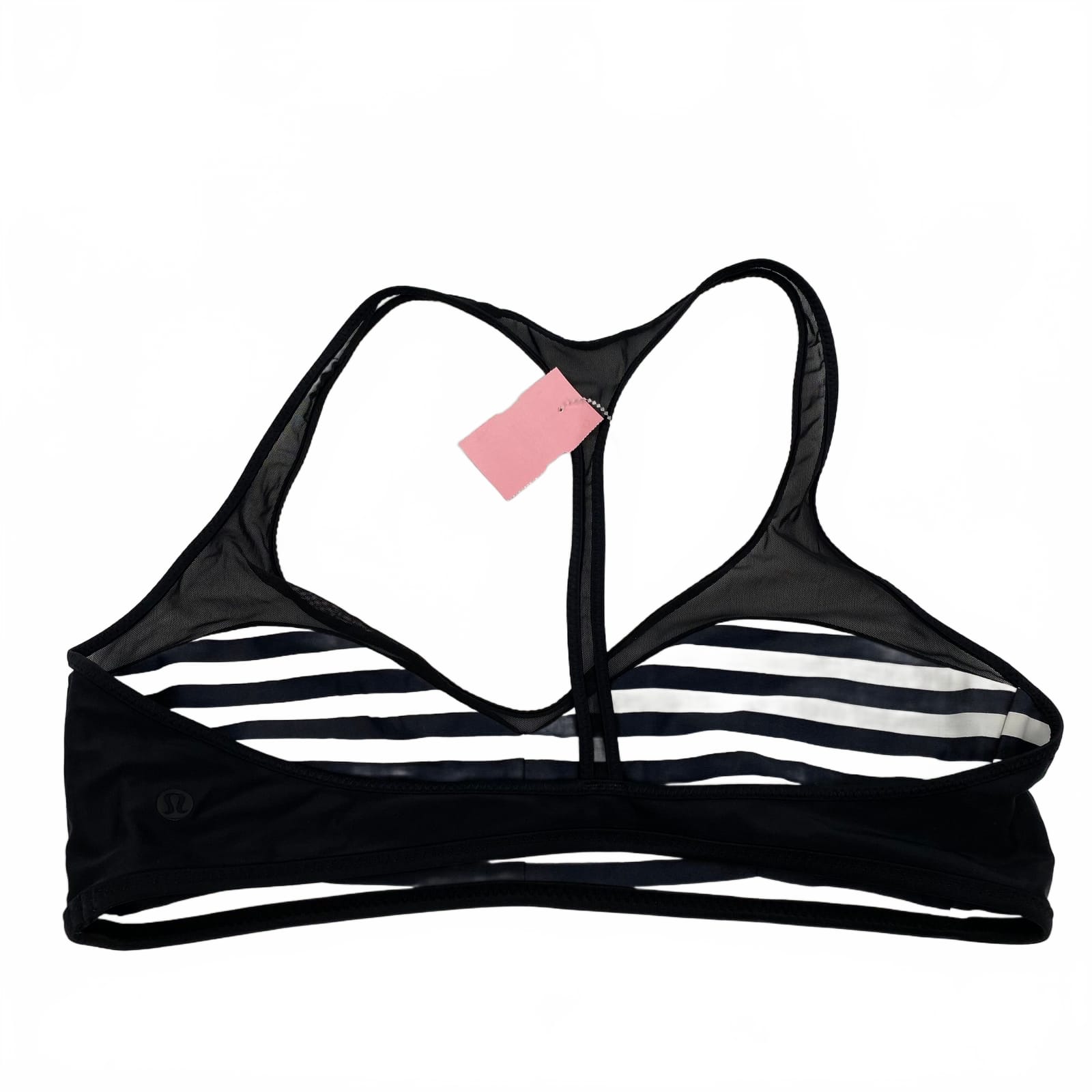 This reversibile sports bra from lululemon athletica blends performance with versatility. The striped design adds a classic touch, while the reversible feature gives you two looks in one. Lightweight support keeps you comfortable through workouts, and the regular size ensures a natural, snug fit. Think of it as two bras in one—black on one side, white on the other—ready to pair with your favorite leggings or shorts for any season. Features: - Reversible design for two looks in one - Striped pattern adds classic athletic style - Supportive silhouette suitable for workouts - Regular size for a natural, snug fit - Versatile wear with easy pairing options - Approx. Measurements: Pit To Pit: 16in, Length: 11.5in - Inventory: 1140963 A two-in-one staple that adapts to your workout and mood.