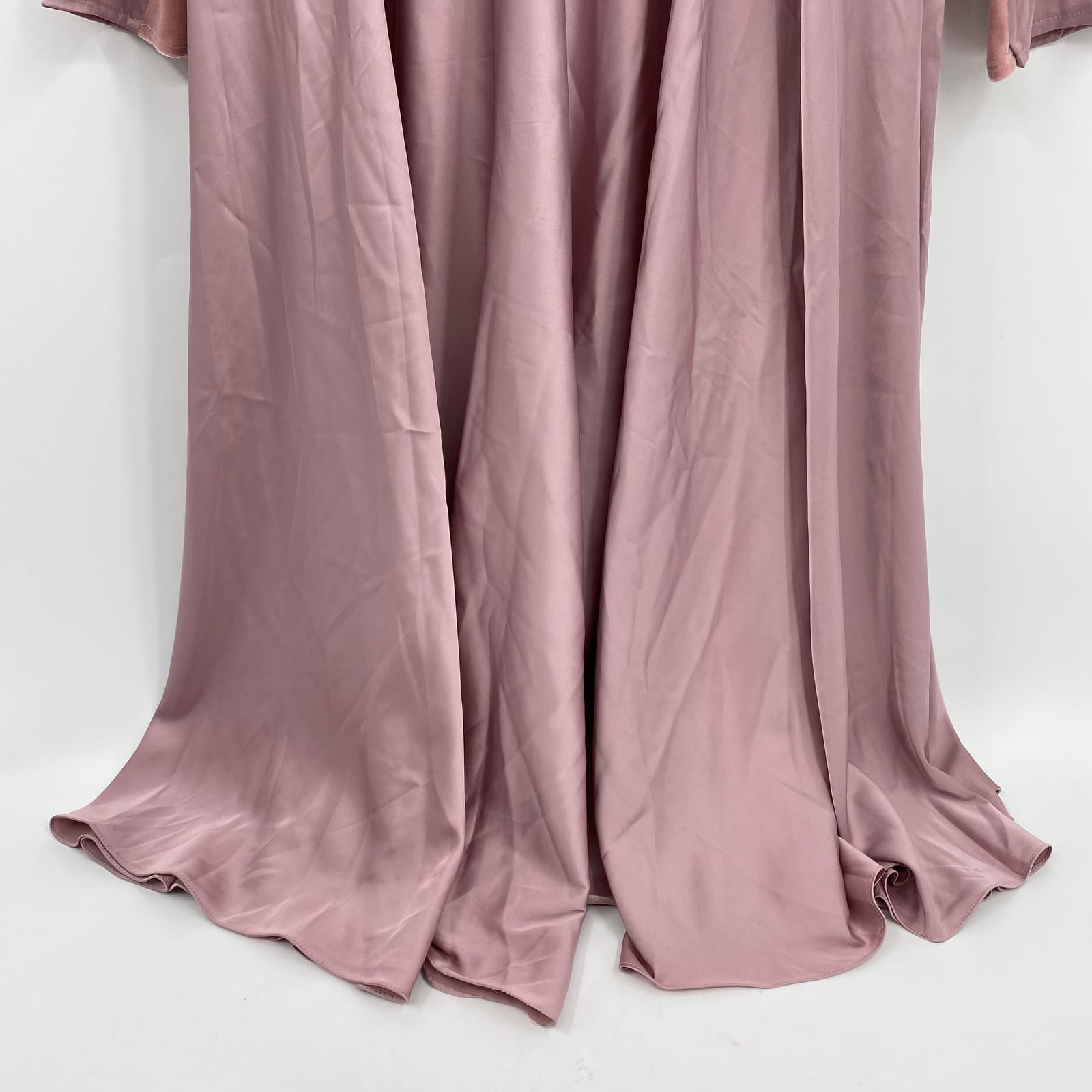 Step into elegance with the Mac Duggal Pink Satin V-Neck Midi Dress. This delightful A-Line dress, perfect for any season, will make you the star of any occasion. Picture yourself twirling in this solid pink beauty, feeling the luxurious satin fabric flow around you. Whether you call it a long sleeve midi dress or a classic midi gown, it's an irresistible choice for fashion-forward women. Features: - A-Line style for a flattering silhouette - V-Neck design adds a touch of sophistication - Built from premium satin fabric - Long sleeves for an elegant look - Versatile dress for all seasons - Approx. Measurements: Length: 44 in - Flaws: One tiny snag on right side of bust, as pictured. - Inventory: 1095184 Embrace timeless elegance with this stunning dress and make it yours before it’s gone. Perfect for any occasion, it's the versatile piece your wardrobe has been waiting for!