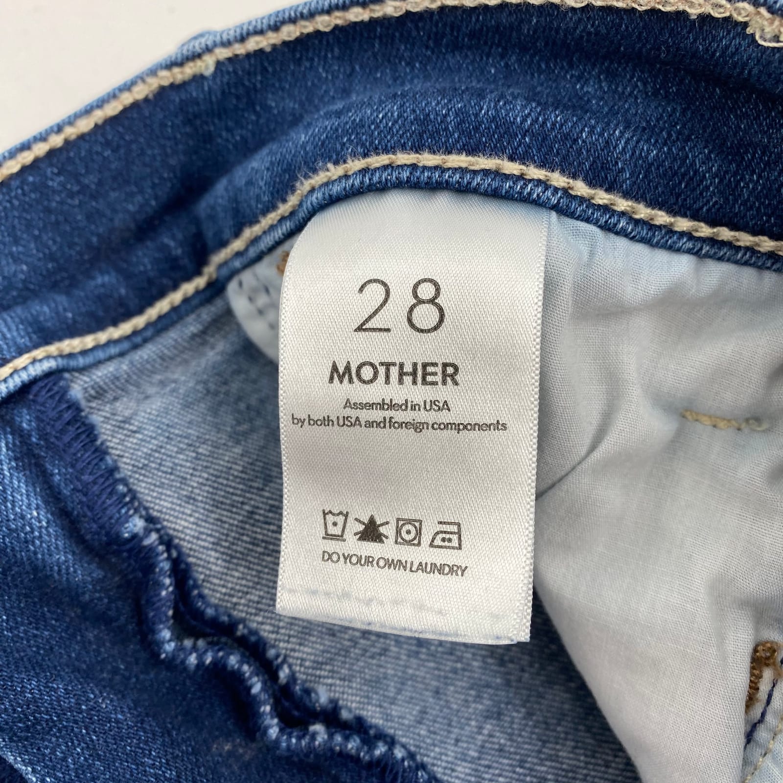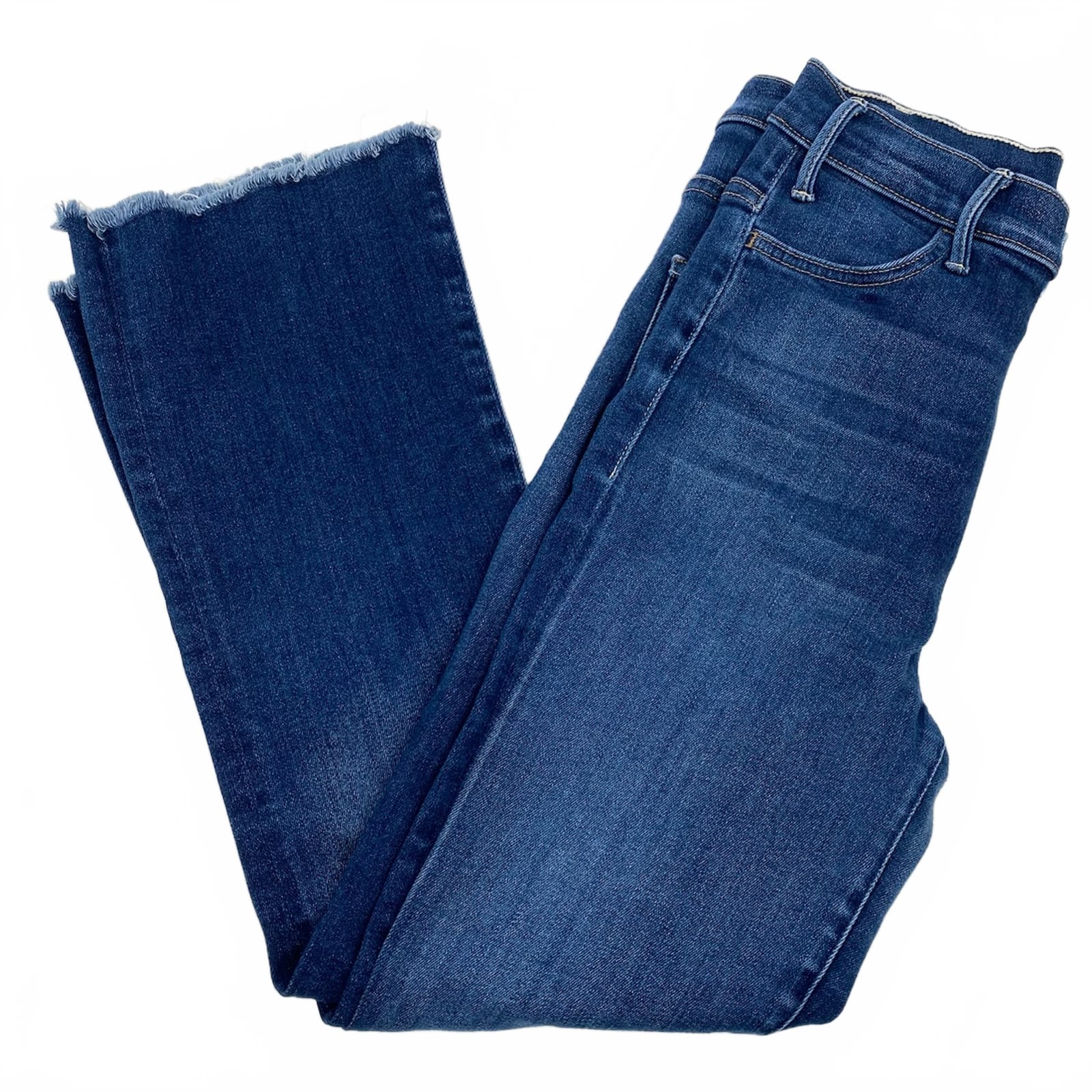 Elevate your everyday style with these MOTHER dark wash ankle fray jeans. Designed for comfort and versatility, these jeans fit seamlessly into any wardrobe, whether you’re dressing up for brunch or keeping it casual on the weekends. The flattering cut and edgy frayed hem add a touch of modern flair to your look, making these jeans a staple for all seasons. Features: - Crafted from a soft blend of cotton, lyocell, and polyester - Flattering ankle length with stylish frayed hem - Perfect for any occasion—dress them up or down - Classic solid pattern suits various tops - Made in the USA with quality craftsmanship - Approx. Measurements: Inseam Measurement: 25 in, Waist Measurement: 27 in, Rise Measurement: 11 in - Inventory: 1131590 Only one available—make it yours before it's gone.