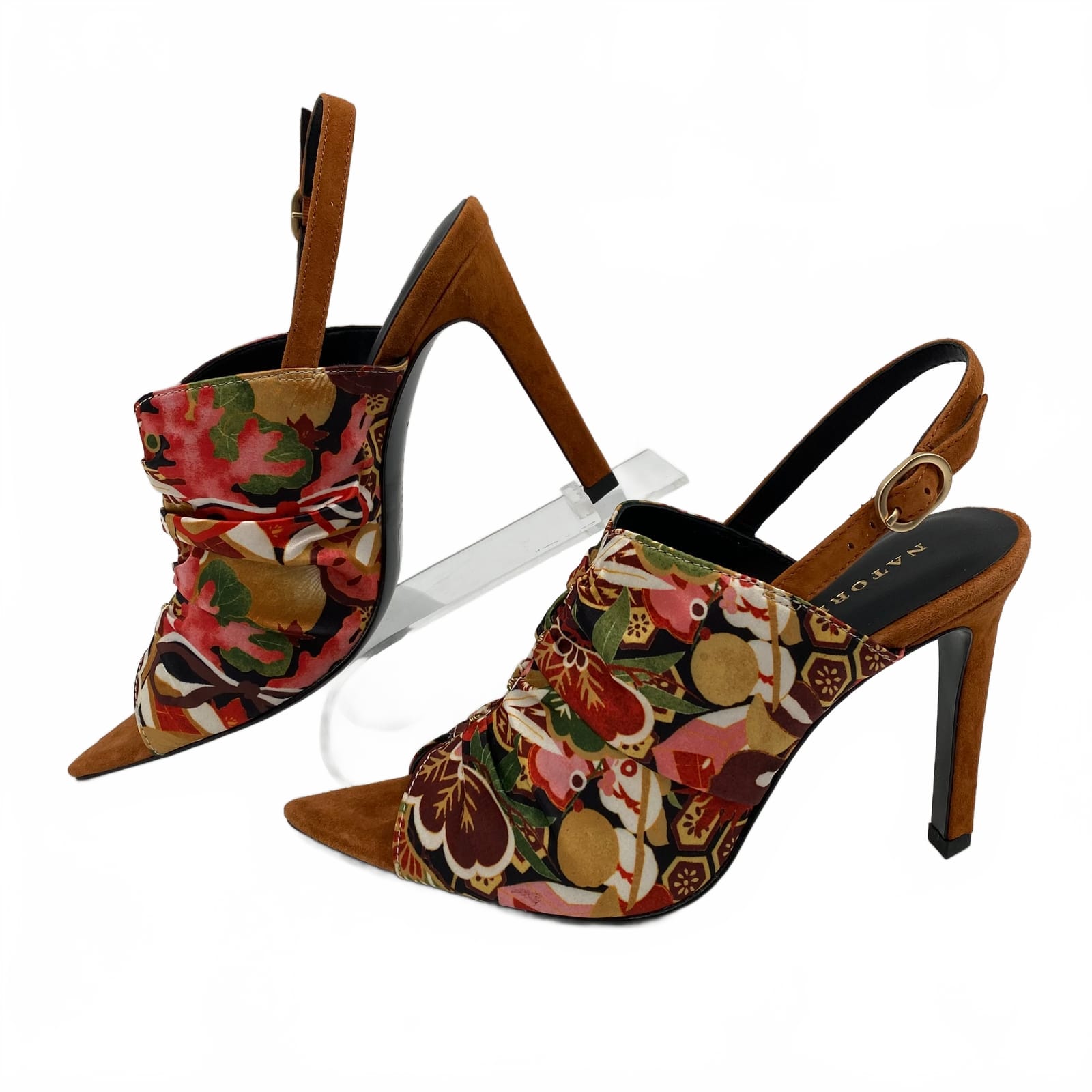 Step into effortless elegance with these Natori slingback peep toe heels. The rich brown and red patterned suede and leather combo adds a touch of sophistication to any outfit, making them perfect for both casual outings and special occasions. Whether you're dressing up for a night out or adding flair to your work attire, these heels provide the style and comfort you need. Features: - Crafted from premium suede and leather - Classic slingback design for adjustable fit - Peep toe style for a trendy touch - Versatile enough for year-round wear - Perfect for both day and evening occasions - Inventory: 1132640 This stunning pair won't last long—make them yours today.